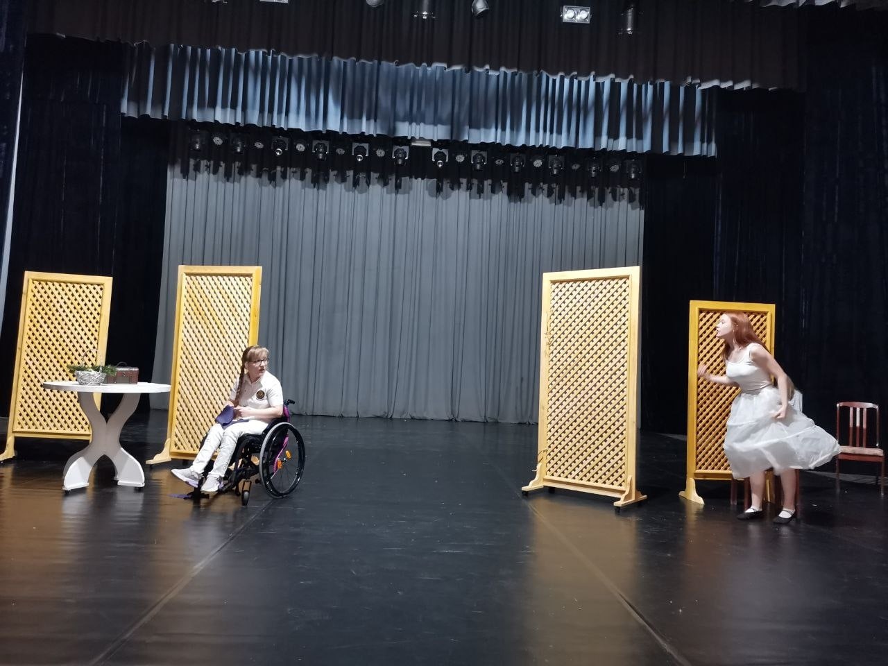 А тем временем идет подготовка нового спектакля и на сцене, и индивидуально, и группами. Летом, ох как трудно работать, но наши артисты.