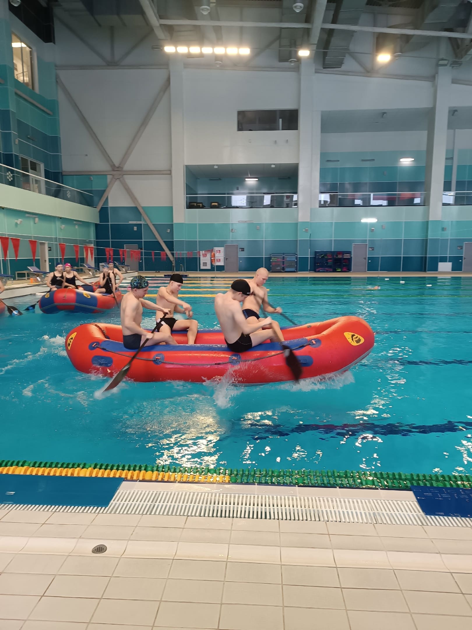 И сами наплавались и с удовольствием полюбовались на тренировку по рафтингу!
