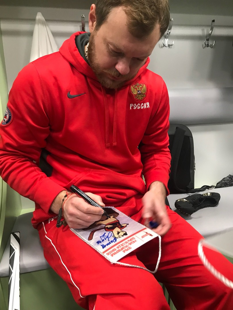 Наш вратарь усвоил урок на отлично, как доказательство – практически, не пропустил ни шайбы во время игры. После тренировки в раздевалке Антон подарил детям свою именную клюшку, на которой оставил автограф вместе с Максимом Галановым. Наши следж-хоккеисты загадали желания и «замагнитили» клюшку на удачу