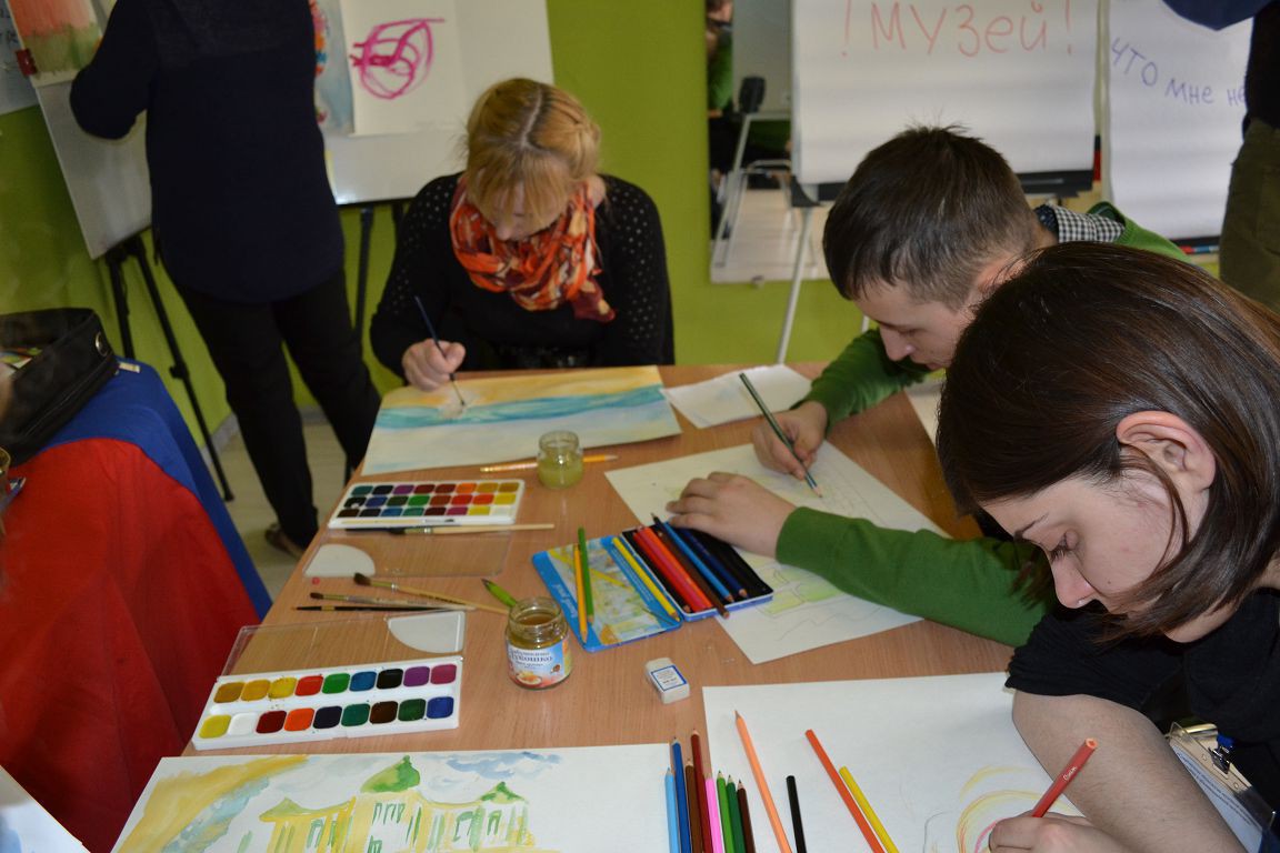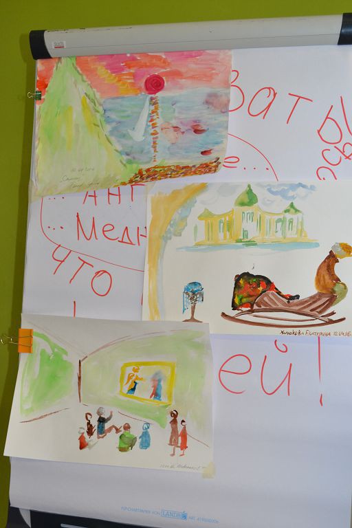В рамках авторского семинара А.Н. Колесина дети вместе с участниками семинара "рисовали" свои музейные впечатления, обсуждали увиденное, общались.