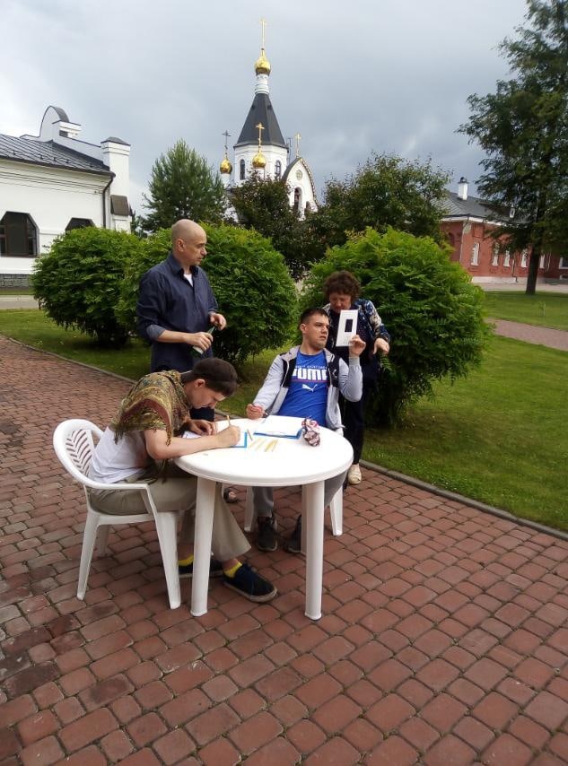 По словам преподавателя Новой художественной школы им. А.Г. Поздеева Андрея Исаенкова они справились. Ну, а как было не справиться, когда погода была прекрасная. Дождь, который собирался было начаться, быстро закончился. И место для первого выезда было выбрано хорошее – территория Свято-Успенского монастыря. Малолюдное и очень красивое. Обязательно еще туда вернемся!