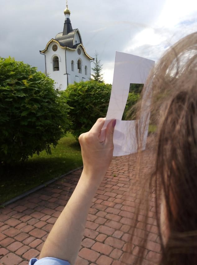 Сложность заключалась в том, что надо было не просто выбрать, то, что хочется нарисовать, но и уместить это на лист. Тут им помогла хитрость, в виде вырезанного прямоугольника, – смотришь через него и понимаешь, что и как надо расположить на листе.