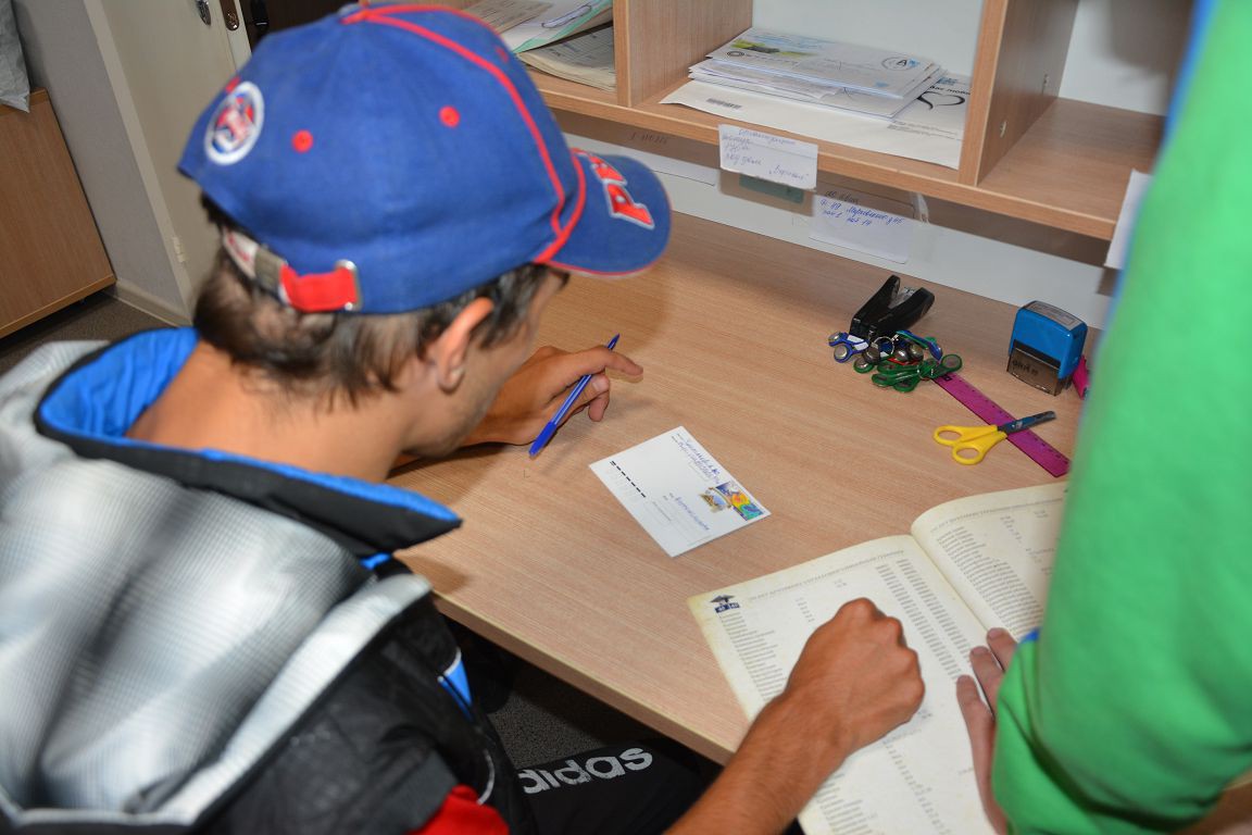 Ребята познакомились с правилами заполнения адреса, индекса, сами заполнили почтовые открытки, погасили марки на открытке штампом отделения с датой 31.08.2016 и опустили открытки в почтовый ящик. По окончании встречи участникам подарили юбилейный справочник индексов Красноярского края.