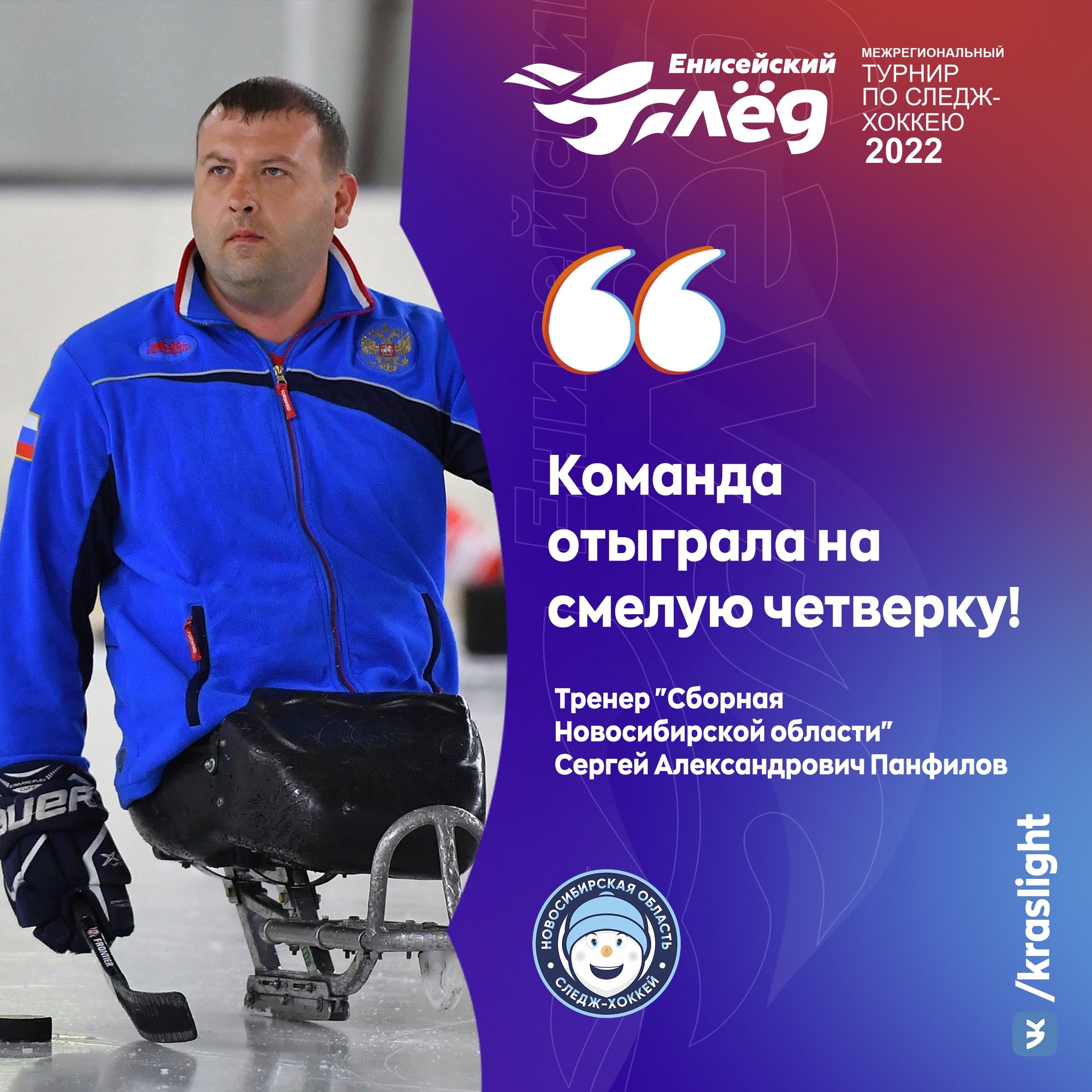 Панфилов Сергей Александрович, тренер «Сборной Новосибирской области»:"Итог игры команды Новосибирской области против «Уральских волков».Считаю, что команда Новосибирской области отыграла на смелую четверку. Почему четверку? Потому, что видно много ошибок, есть над чем работать, поэтому пока это только четверка. Игра была интересной для зрителя, увидели много борьбы и забитых шайб.Что бы хотелось в следующих играх?Ну, конечно, чтобы судьи судили повнимательнее. Было очень много ошибок по входу в зону, офсайдов. Игроки бросали клюшку, которой не дотягиваются до шайбы – это нарушение, которое карается 2-мя минутами, но этого сделано не было. Это было неоднократно. Пробовал говорить судье, но, к сожалению, не услышали. А так, в целом, игрой доволен. Готовимся к следующим играм этого турнира. Ну, и в общем, идём к итоговым играм на фестивале, который пройдет в Сочи. Спасибо!"