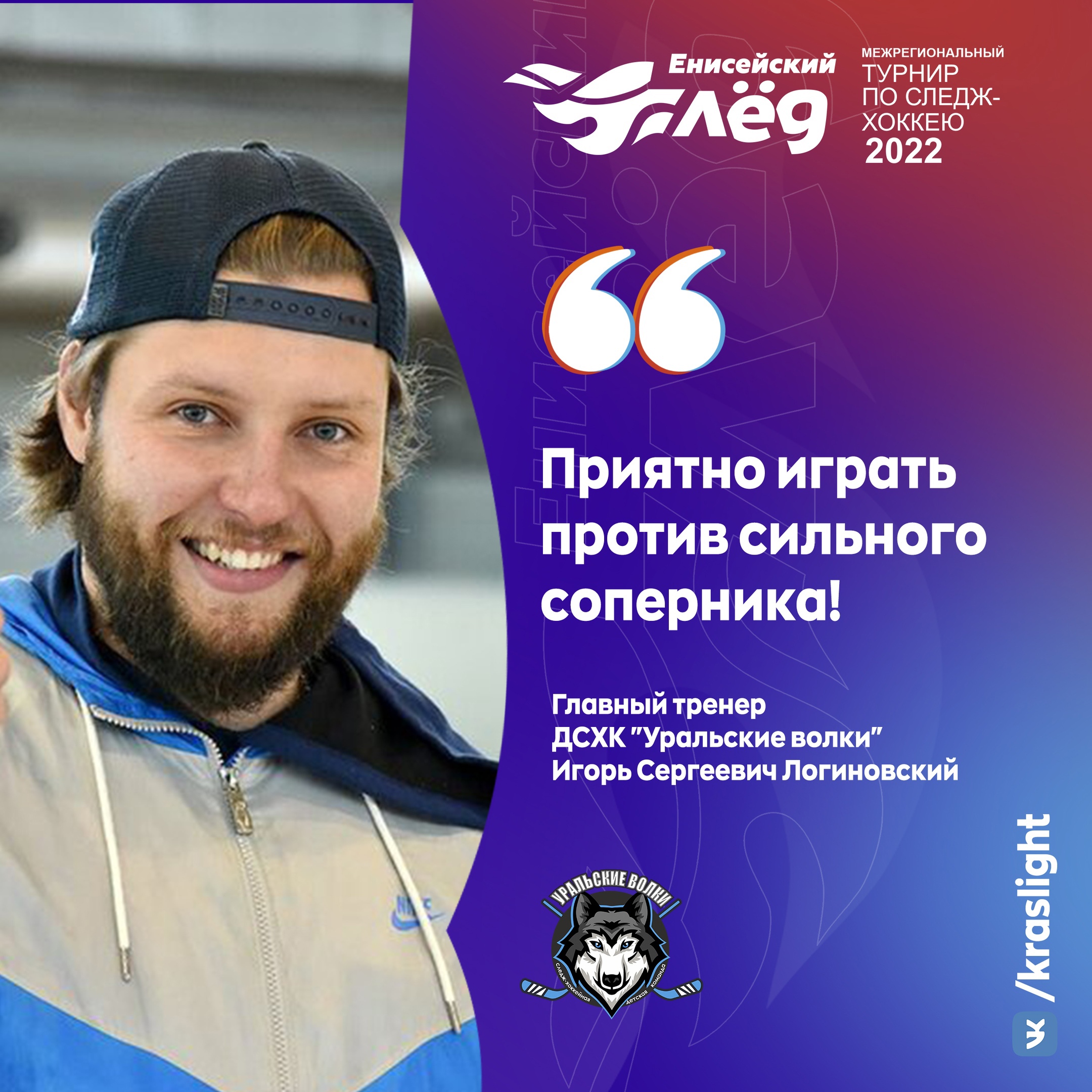 Логиновский Игорь Сергеевич, главный тренер ДСХК «Уральские Волки» / Екатеринбург:"Игра была хорошей. Приятно играть против сильного соперника, после таких игр чувствуется прогресс и находятся те ошибки, которые надо убирать. Конечно же, это мотивация для ребят ещё усерднее тренироваться и прогрессировать. Такие мероприятия очень важны для детей, они находятся, так скажем, в спортивной "тусовке" - это очень круто! Спасибо большое организаторам турнира"