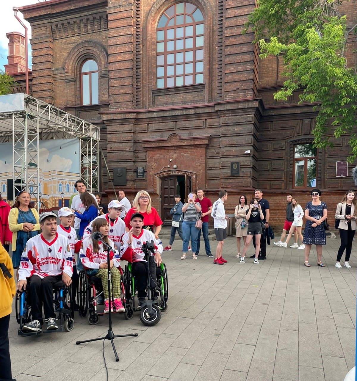 Наша Красная молния и Детская следж-хоккейная команда «Уральские волки общались через мультимидийный портал.