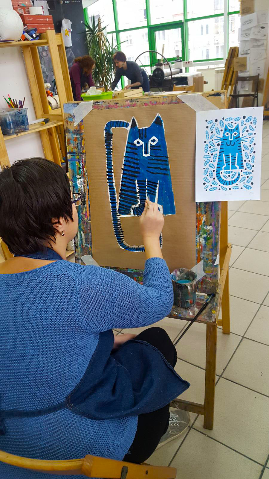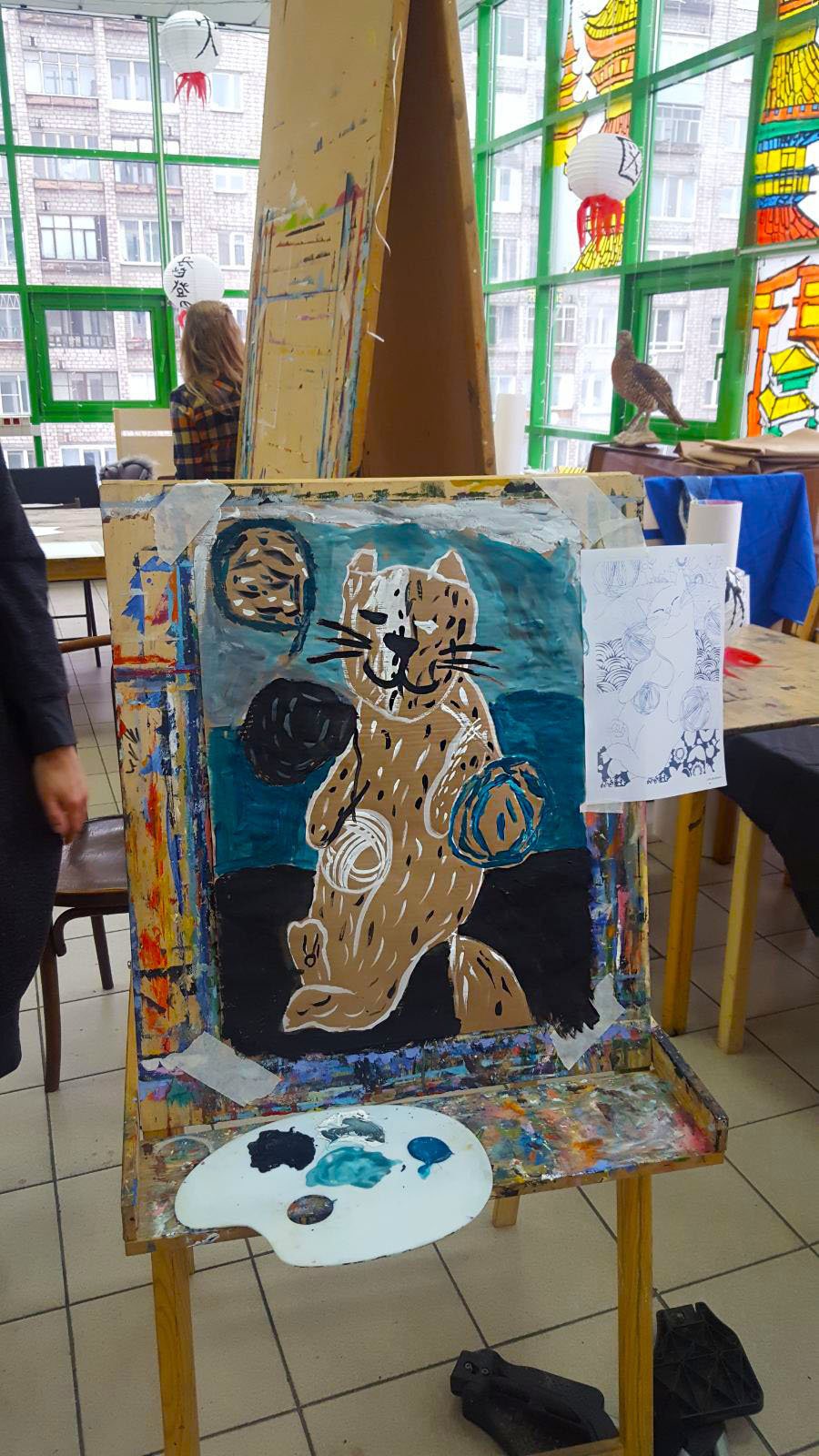 Тема котов была раскрыта не только средствами изобразительных способностей студийцев, они изображали котов на холсте, но и лепили из глины неповторимые блюдца (понятно для котов)))