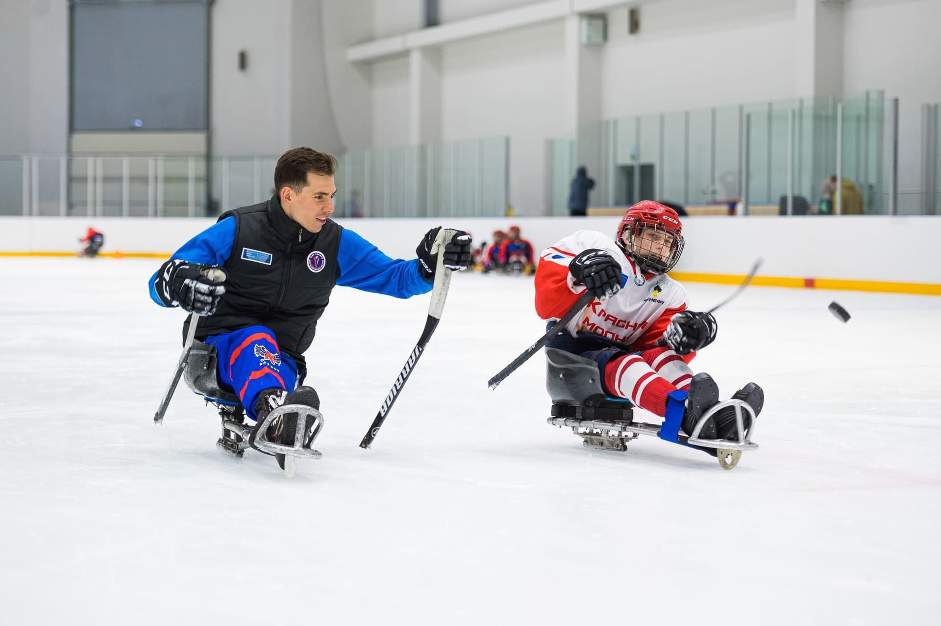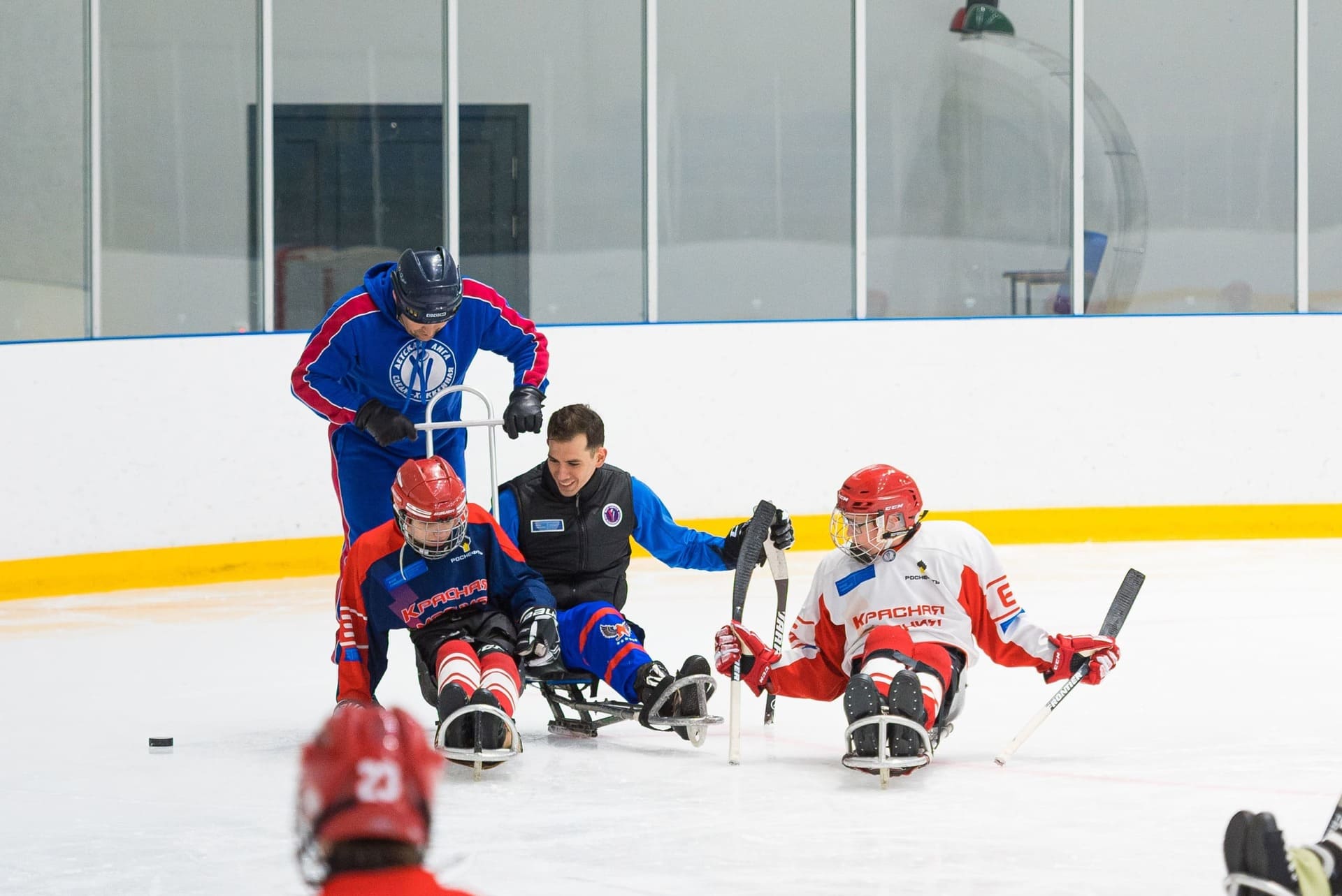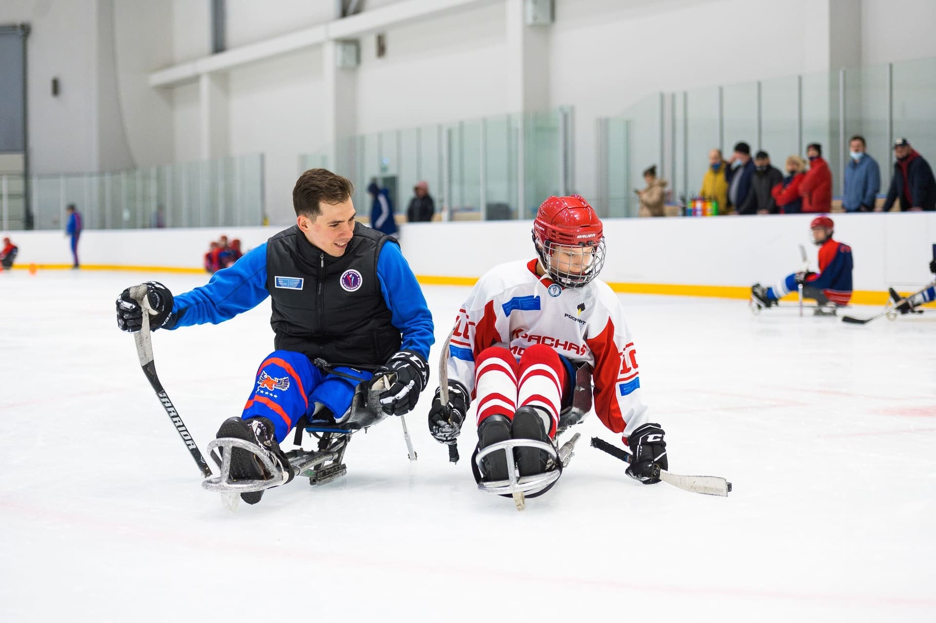Сегодня в ледовом дворце «Кристалл арена» стартовал трехдневный мастер-класс по следж-хоккею. Тренировку для красноярской детской команды «Красная молния» проведет российский следж-хоккеист, капитан сборной России по следж-хоккею, серебряный призёр Паралимпийских игр 2014, посол федерального проекта «Спорт – норма жизни» Дмитрий Лисов.