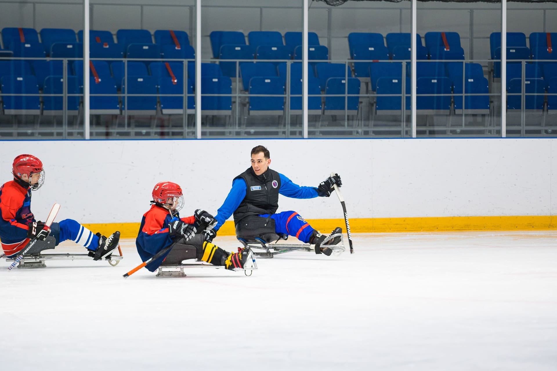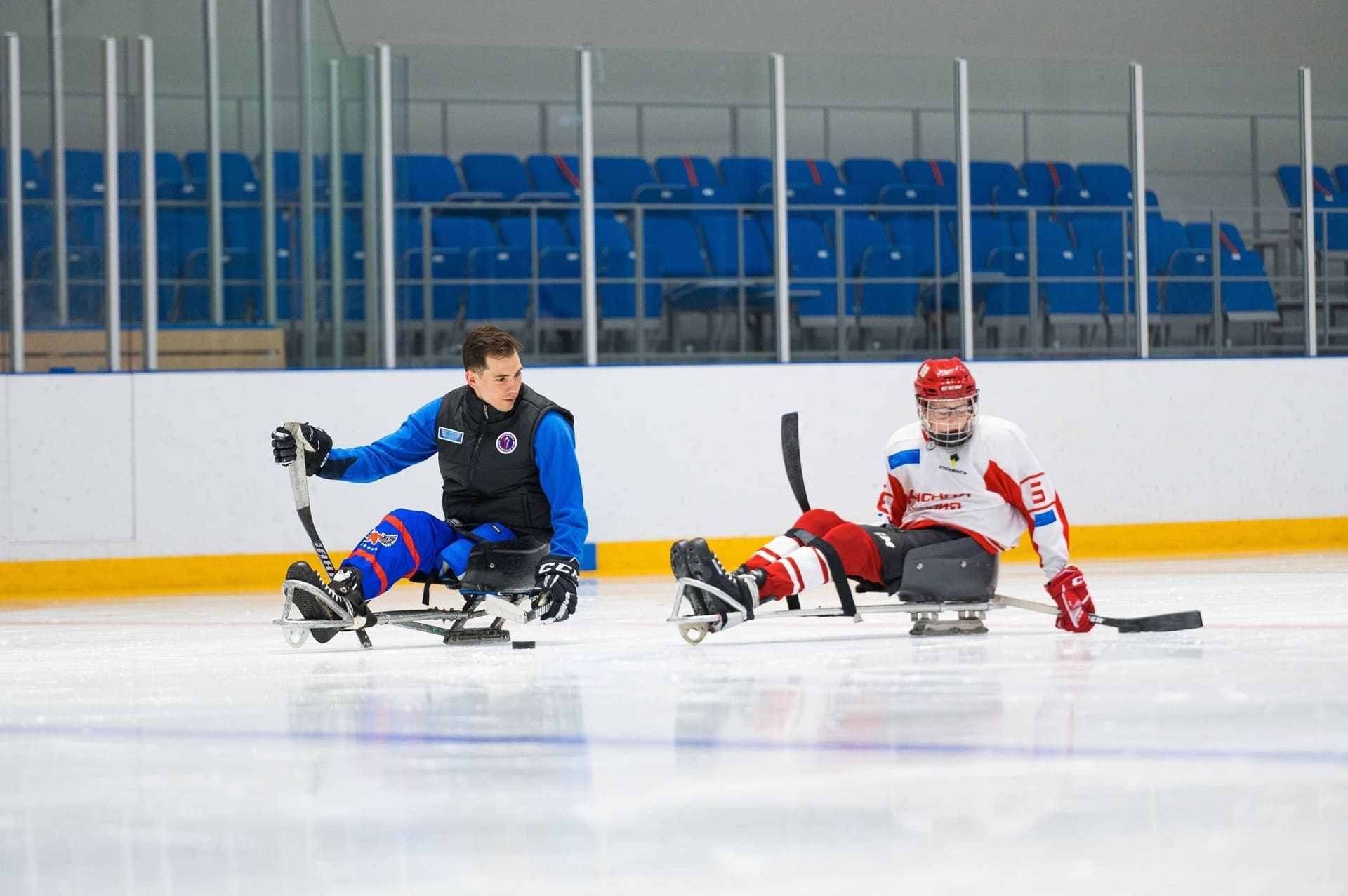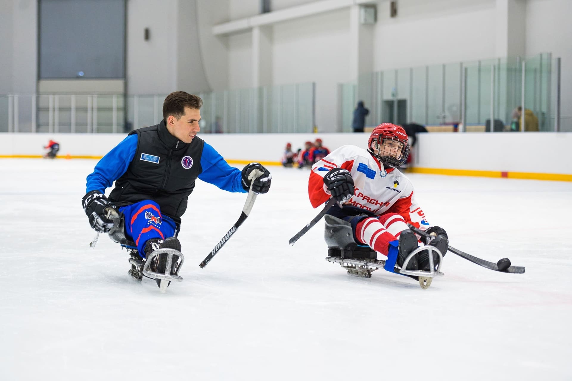 Сегодня в ледовом дворце «Кристалл арена» стартовал трехдневный мастер-класс по следж-хоккею. Тренировку для красноярской детской команды «Красная молния» проведет российский следж-хоккеист, капитан сборной России по следж-хоккею, серебряный призёр Паралимпийских игр 2014, посол федерального проекта «Спорт – норма жизни» Дмитрий Лисов.