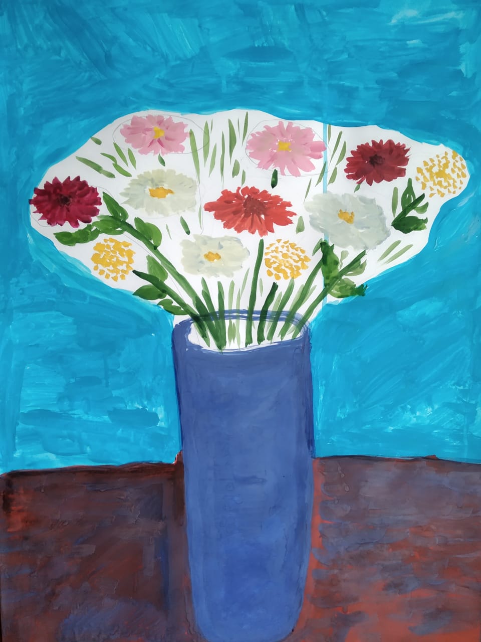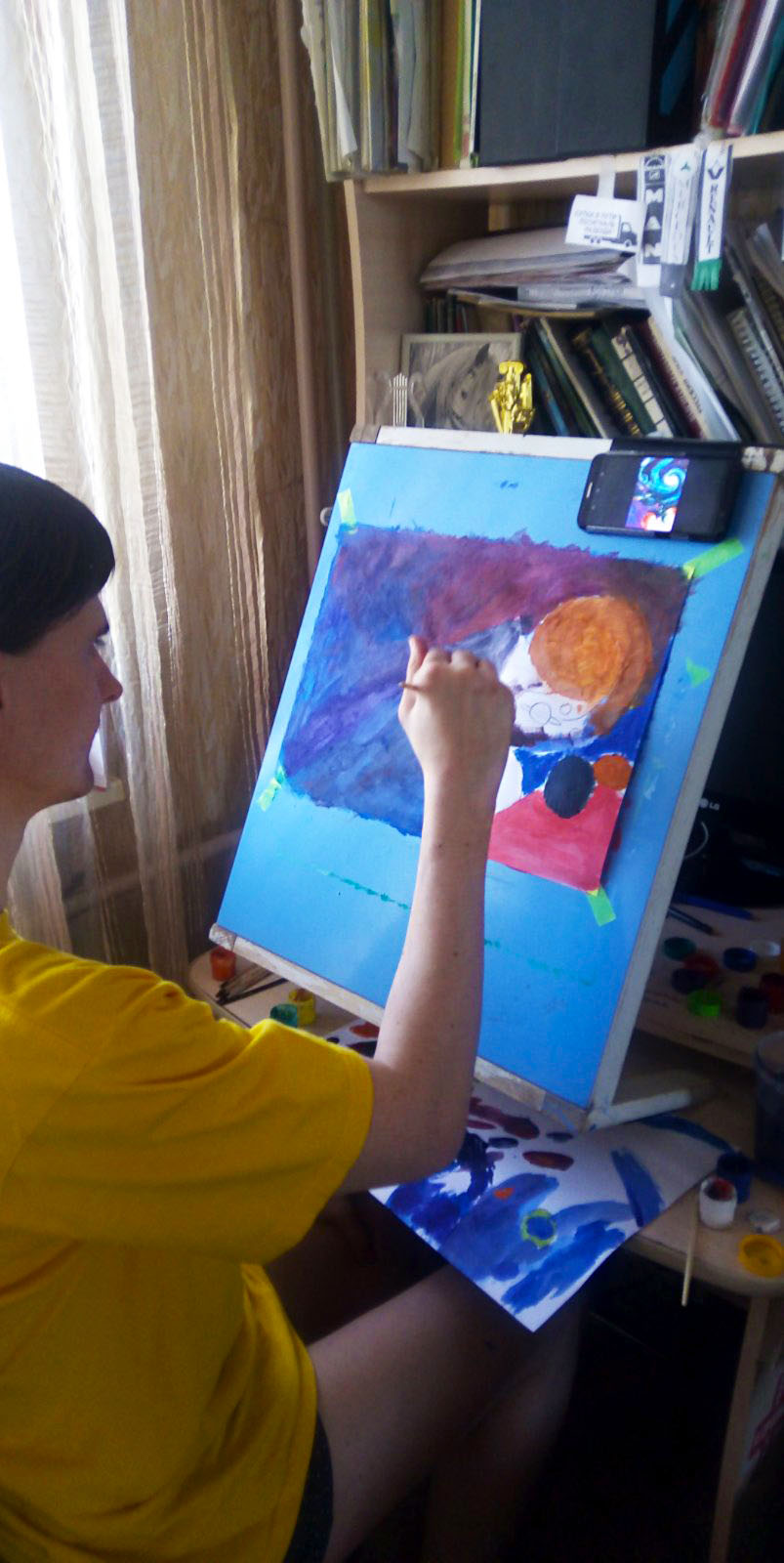Сперва в группе viber участники договариваются о новой теме для работ. Потом прекрасная Юлия Тимакова, педагог Новой художественной школы им. А.Г. Поздеева записывает небольшие видео инструкции, или точнее рекомендации о том, какие можно использовать технологии при выполнении работы. А каждый у себя дома присоединяется к общему творчеству. Конечно привычного вдохновенного общения и атмосферы Поздеевки не хватает, но тем не менее эти прекрасные часы и встречи дарят огромную радость и удовольствие.