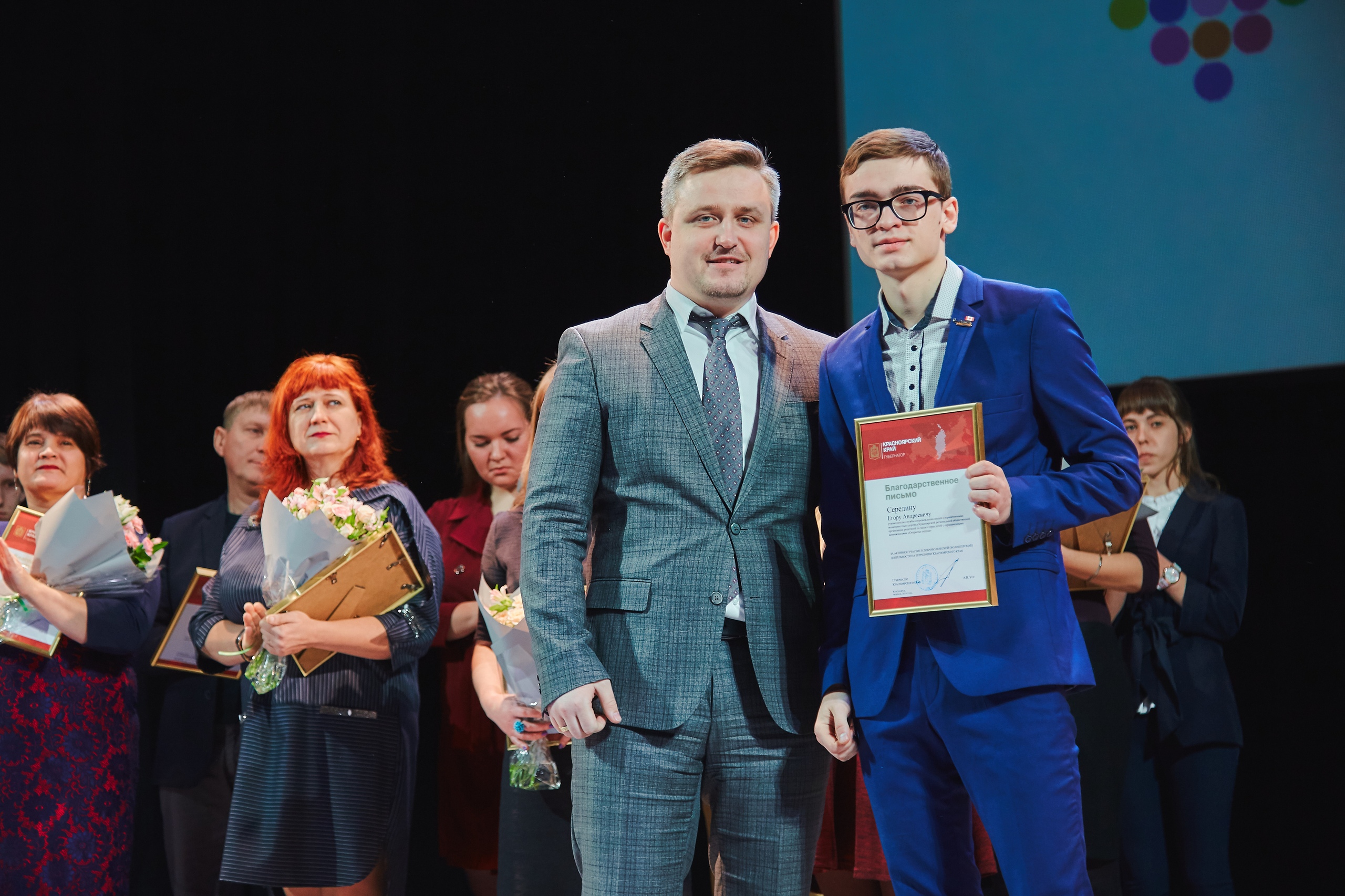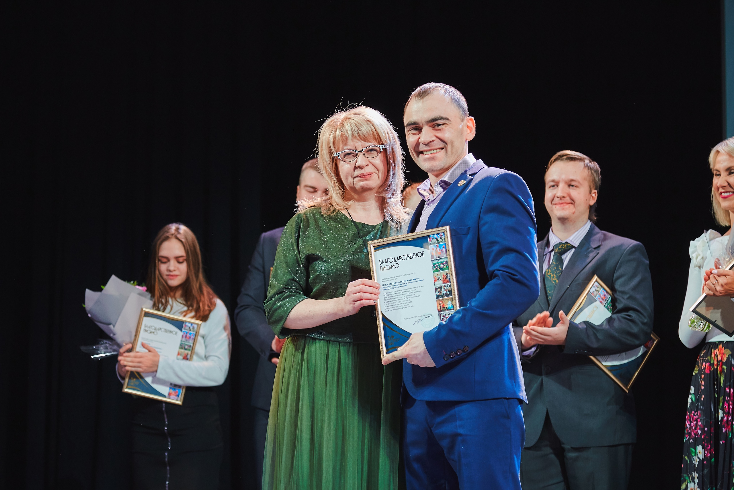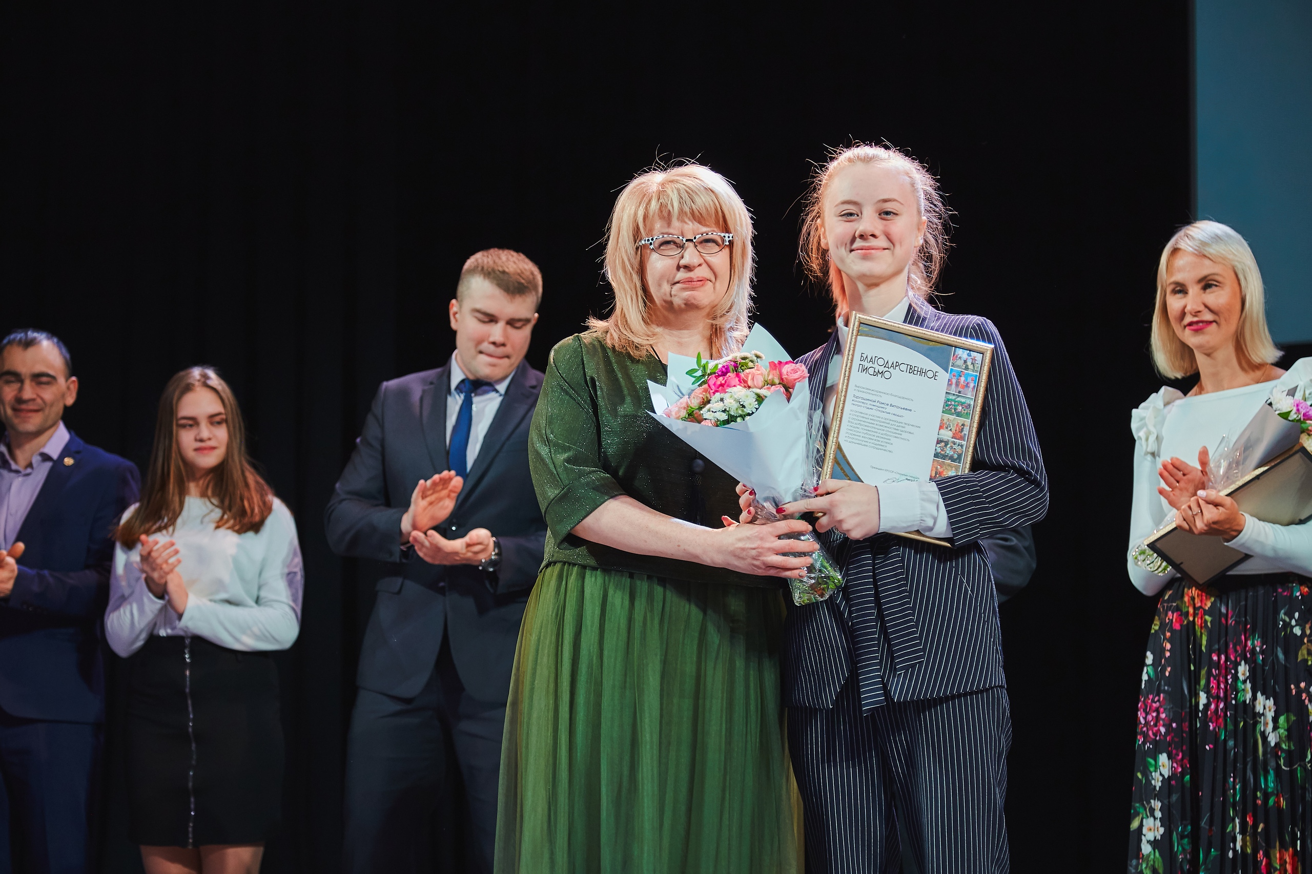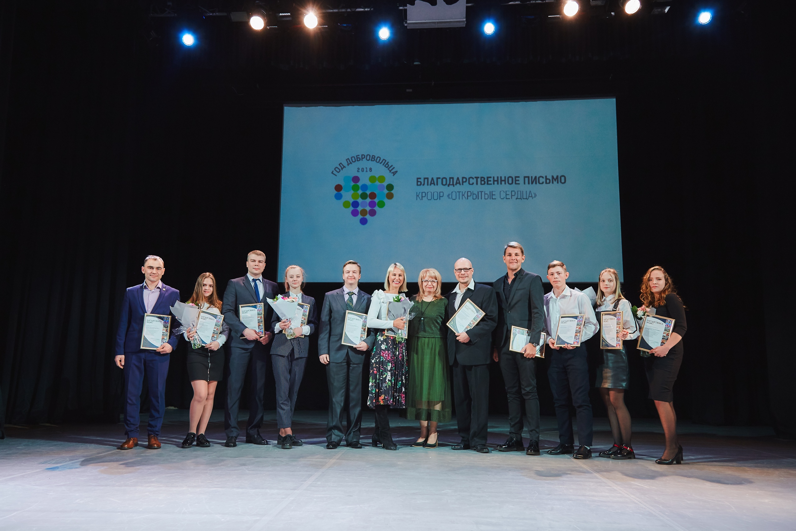 Благодарственные письма от Красноярской региональной общественной организации родителей по защите прав детей с ограниченными возможностями "Открытые сердца" на Церемонии награждения были вручены участникам и добровольцам театр-студии "Открытые сердца", тренерскому составу Детской следж-хоккейной команды"Красная молния", театр-танца "Freedom", команды КВН "Люди ИКС"