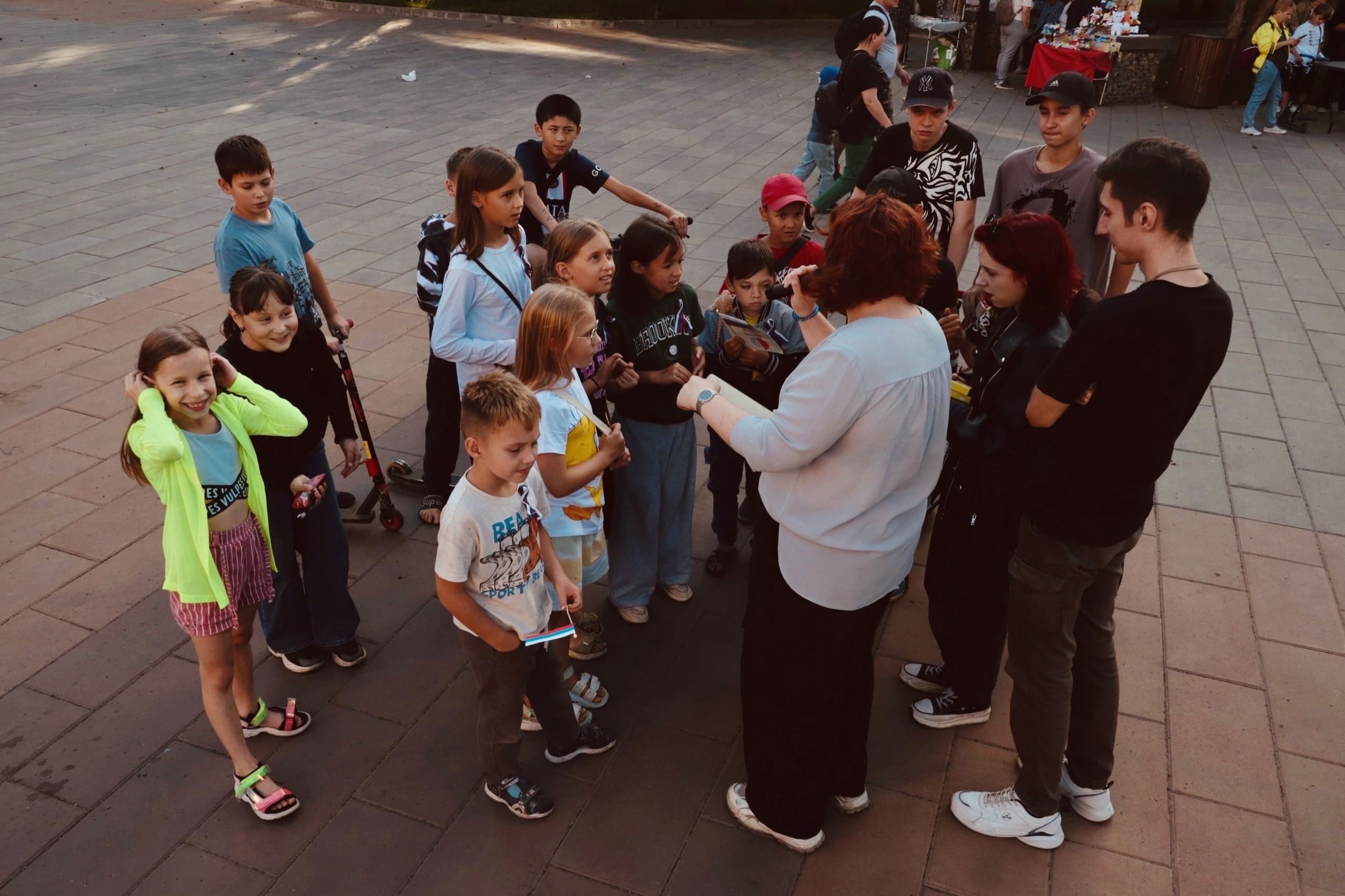 Прекрасный теплый осенний вечер. Множество локаций: коллажная мастерская, литературная гостиная, рыцарские бои Студии артистического фехтования «ГРИФОН»; рисование на мольбертах и прекрасная выставка работ проекта «Отпечаток».