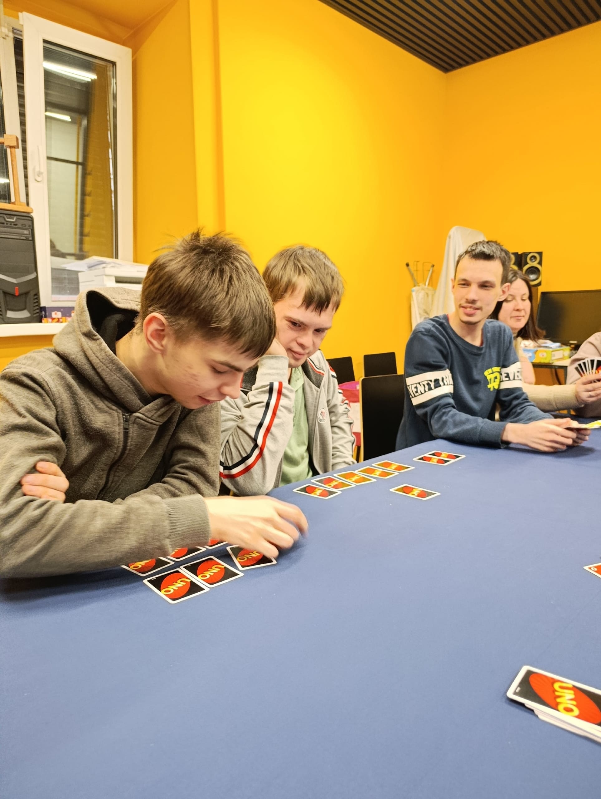 Настоящие страсти за столом («+4» вечно в неподходящий момент!). Море улыбок. Ребята легко справились с изучением правил и показали классный уровень игры.