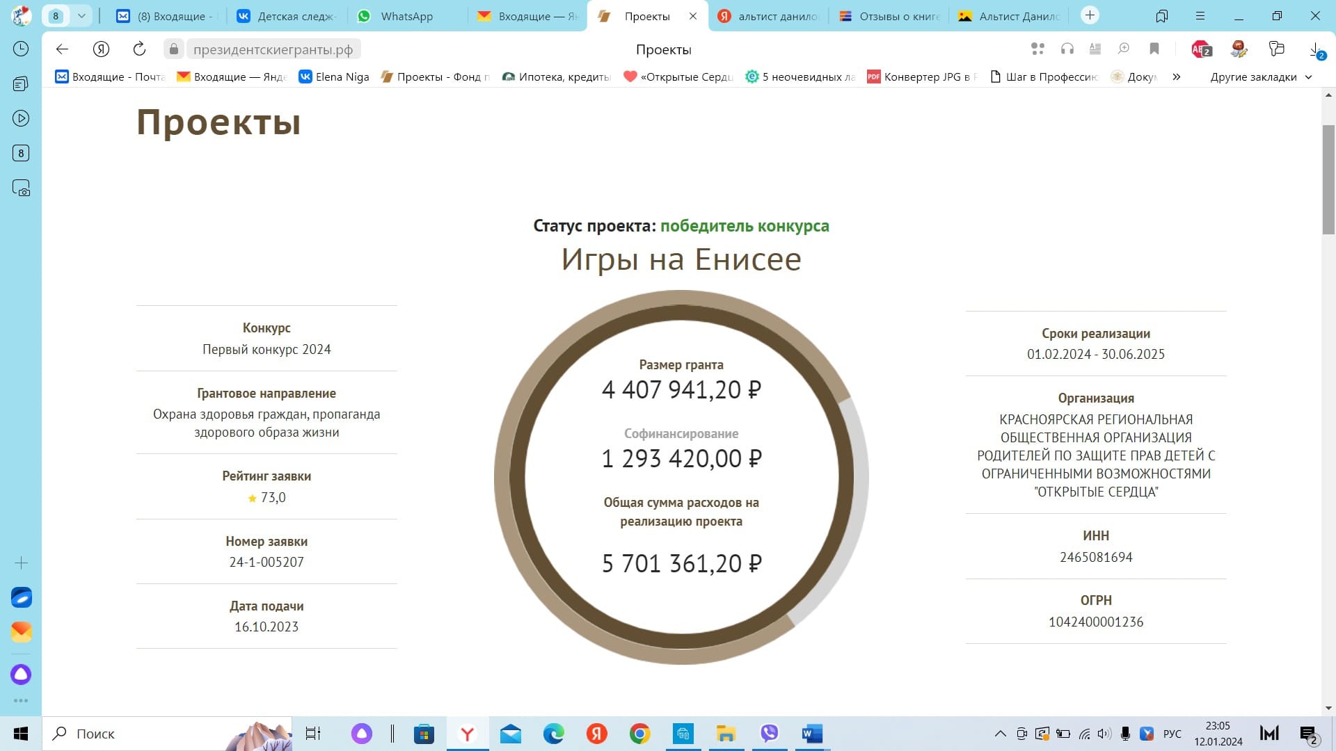Наш проект «Игры на Енисее» получил заветную "звездочку" победителя в конкурсе Фонда президентских грантов!!!!