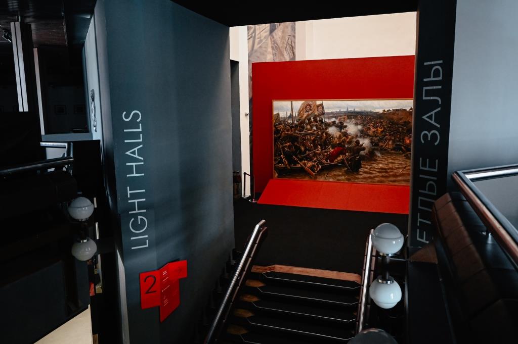 Специально к юбилейной дате из Русского музея привезена самая большая картина художника «Покорение Сибири Ермаком», рассказывающая о решающей битве дружины Ермака с полчищами хана Кучума в 1582 году.