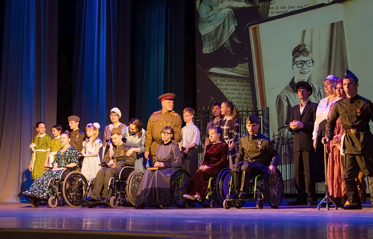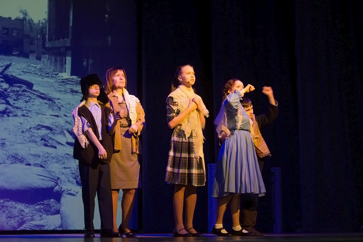 На сцене играли дети и взрослые показывая истории из военной жизни, составленные из воспоминаний бабушки блокадного Ленинграда.