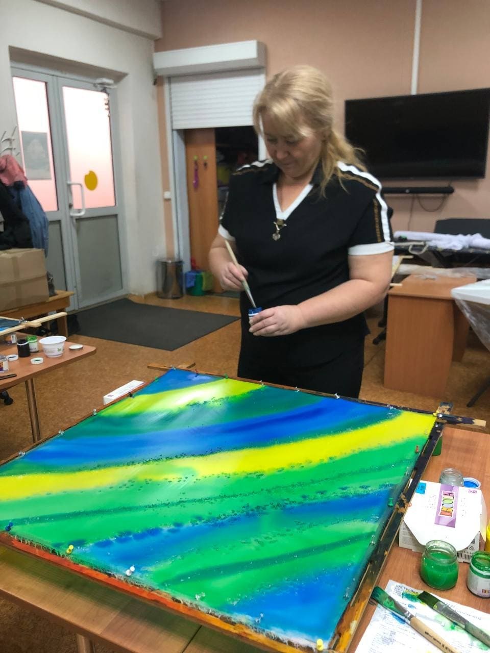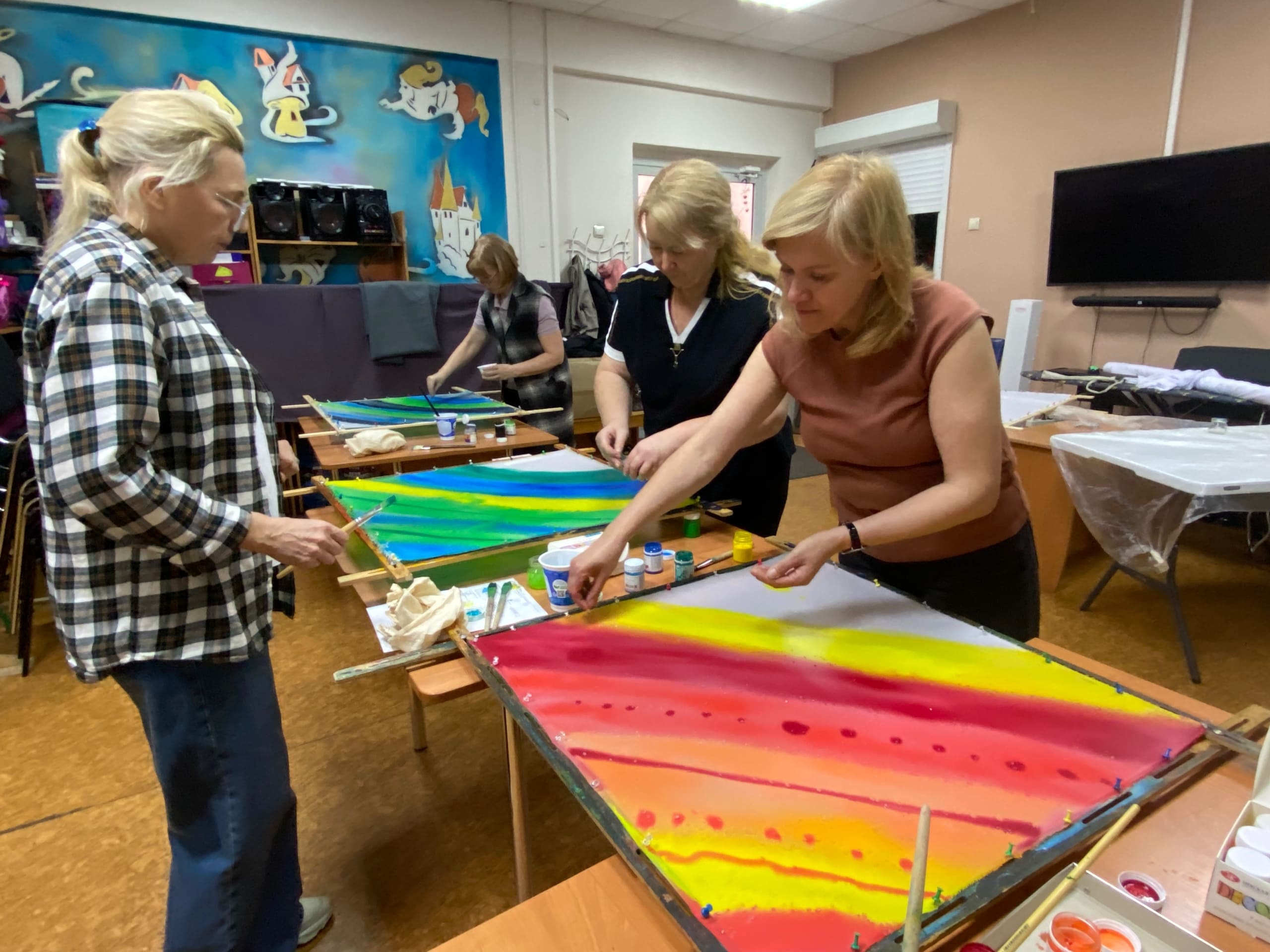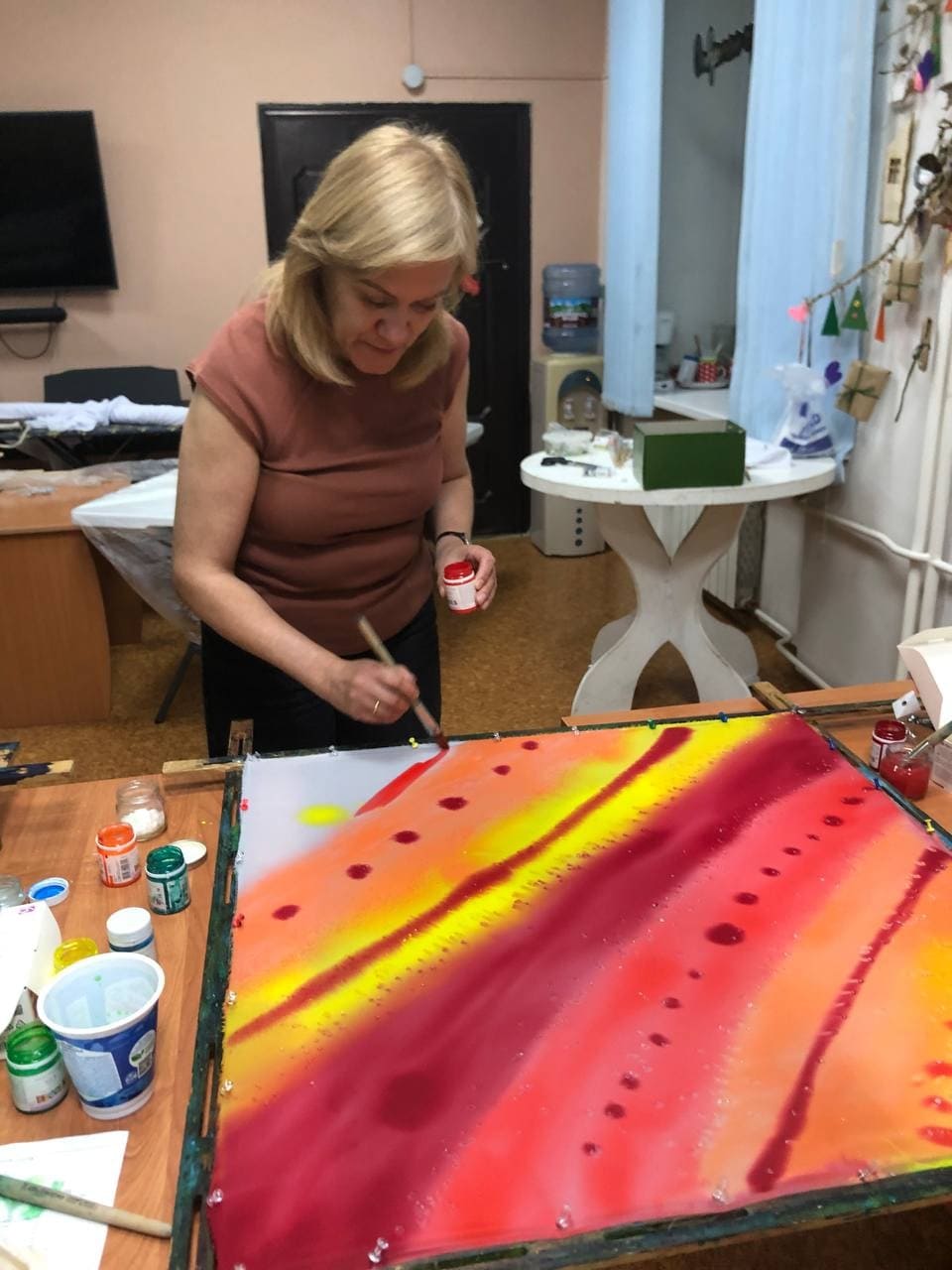 Художник и педагог Татьяна Анцеева провела для нас мастер-класс и уже с первой встречи мы узнали основы техники, сделали первые шаги в практике, получили море вдохновения и неиссякаемый поток идей! и воспоминаний про ушан, узелки. Котиков и домики на платках, помните? (надо найти фото).