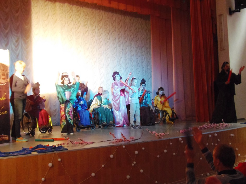 Второе выступление было подготовлено для воспитанников детского дома (Петергоф). Кроме этого наша театральная студия приготовила для своих зрителей интерактивное шоу с бумвокерсами. Зрители приняли наших ребят с восторгом и аплодисментами.