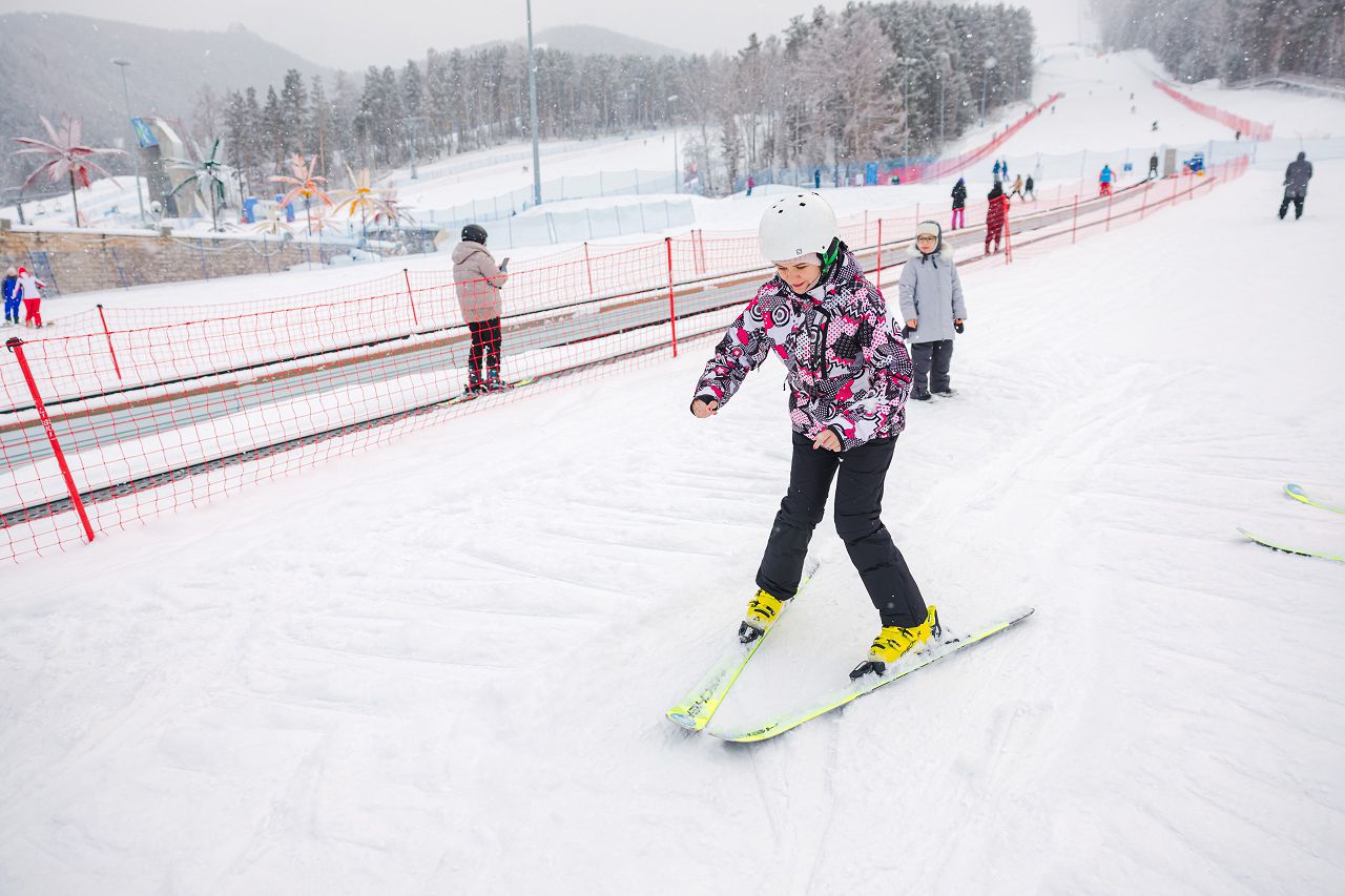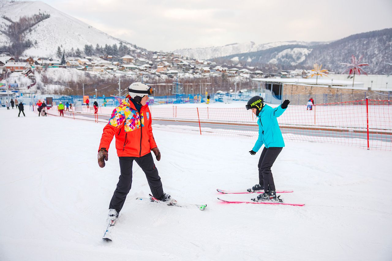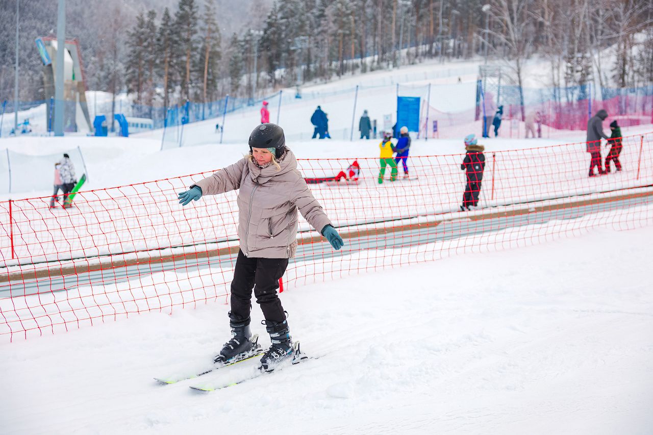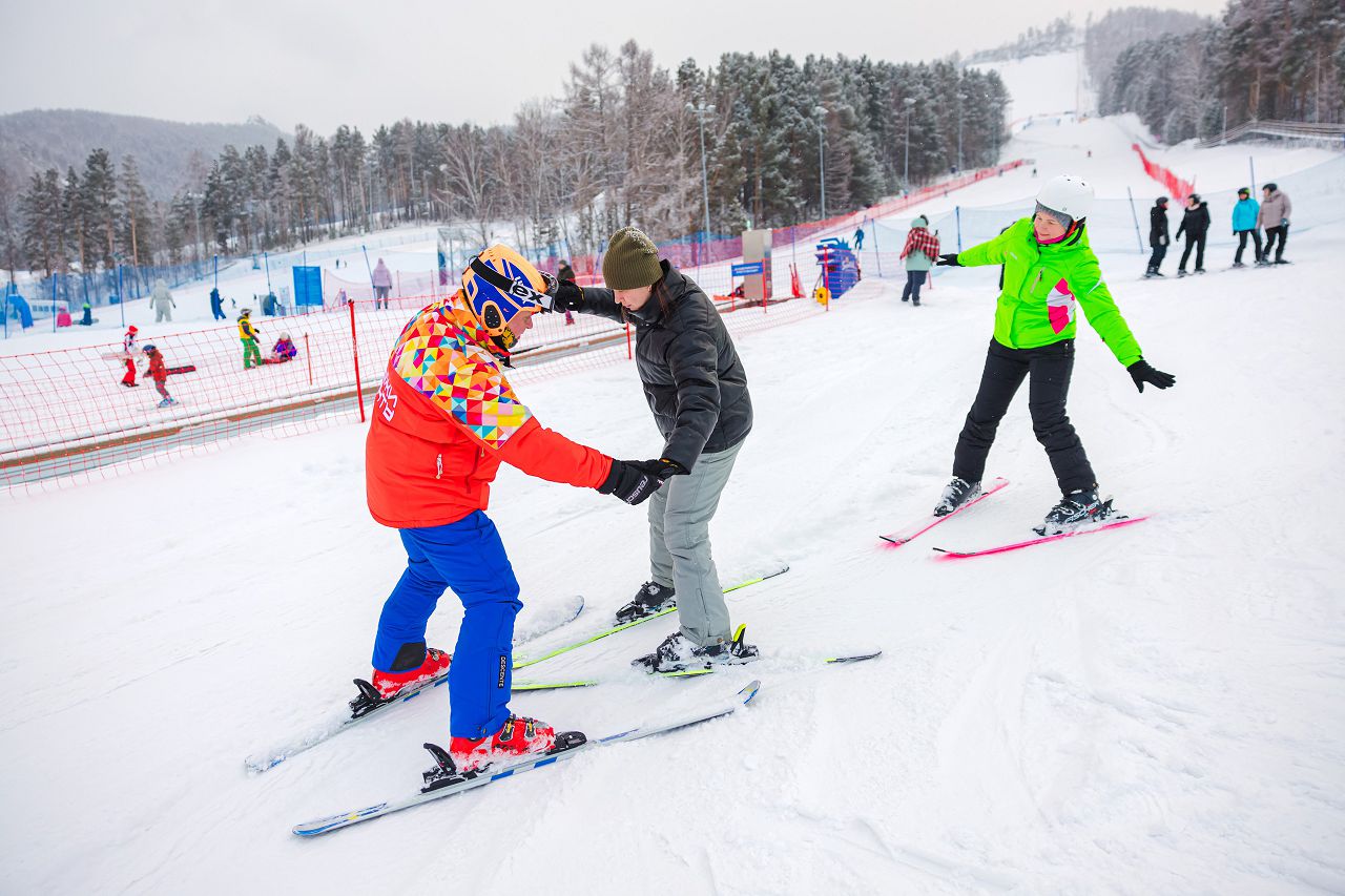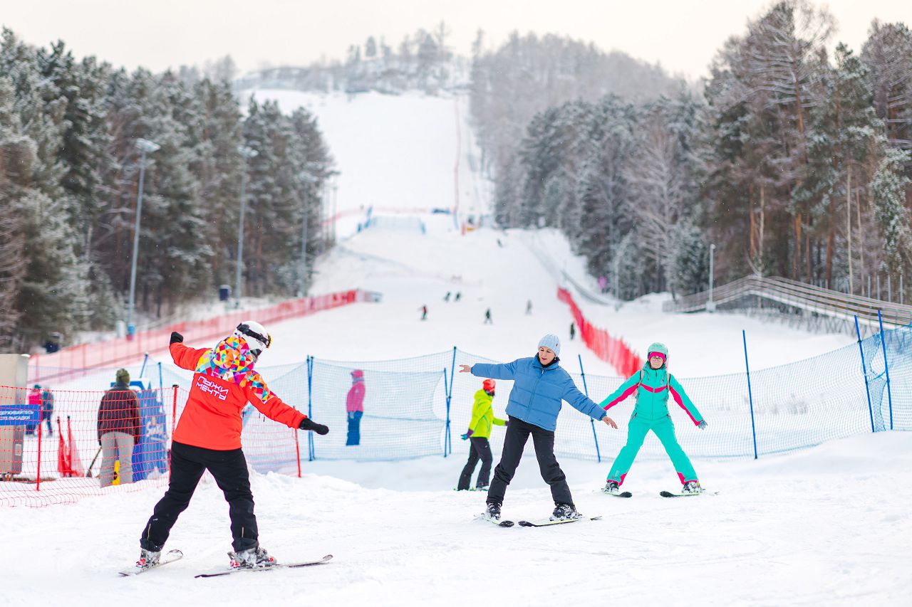 После подбора оборудования и экипировки наши смелые мамы вышли на учебный склон, где инструкторы провели для разминку, инструктаж по безопасности и поделились лайфхаками, как преодолеть первые трудности: как тормозить, как контролировать скорость, как вообще управлять лыжами, когда на ногах огромные ботинки