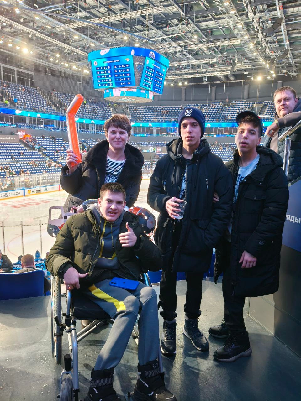 Матч КХЛ «Сибирь» — «Металлург». Взрыв эмоций! Стадион «Сибирь Арена» потрясающий, шоу-открытие фантастическое. Мурашки по коже, когда 11 000 болельщиков поют гимн России. Полная заполняемость арены, все болеют за свою команду. Это невозможно передать словами. Хотя хозяева поля проиграли, игра была динамичной и жаркой. Отдельное спасибо организаторам за внимание к людям с ограниченными возможностями — парковка для инвалидов прямо у входа, большие лифты, никаких проблем с прохождением и досмотрами. Нас проводили быстро и комфортно, — делятся участники делегации «Красной молнии».