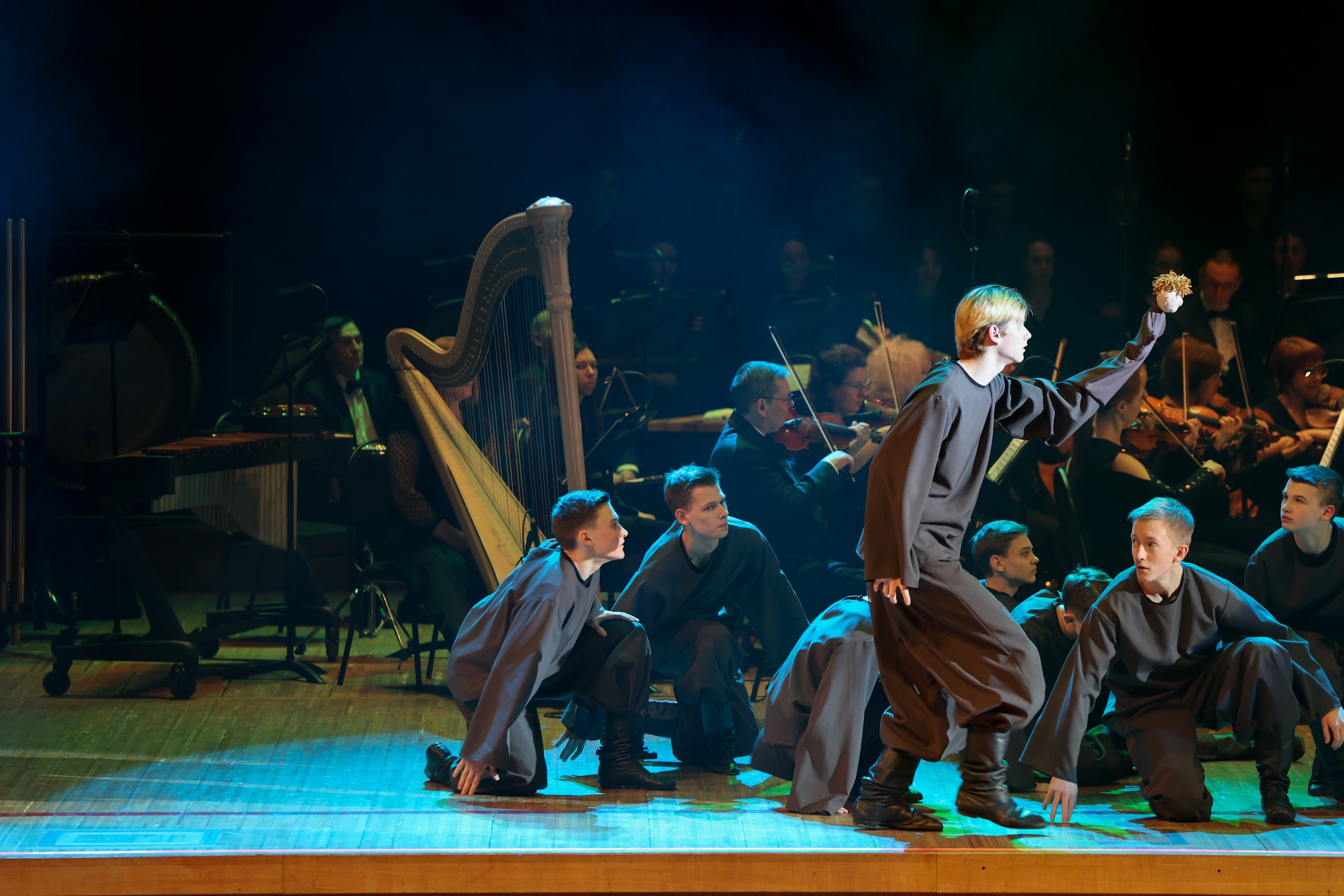 Постановка собрала полный зал – и ещё долго после окончания зрители не расходились и кричали «браво»! Актёры театра-студии прекрасно исполнили свои роли на сцене Красноярской филармонии, органично сплетая сюжет вместе с танцорами хореографического ансамбля «Радуга». А в завораживающий музыкальный мир зал погрузил Красноярский академический симфонический оркестр под руководством дирижёра Михаила Мосенкова и хор обучающихся колледжа и института искусств под руководством Анны Евгеньевны Грузинской.