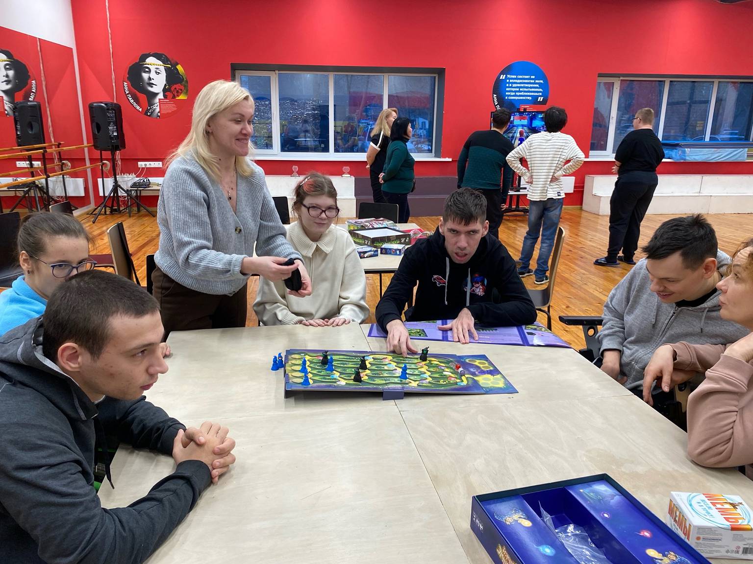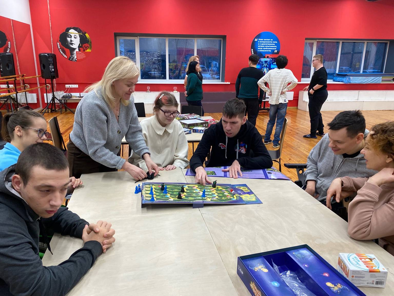 Сегодня изучали правила новых, которых у нас стало ещё больше! Особенностью дня стало и включение в наши игры – физкультурной разминки! Поиграли в «Спорт» на приставке Xbox 360! Было весело и шумно! Решили включать такие подвижные игры в наш «интеллектуальный мир настольных игр». А ещё получили много подарочков!