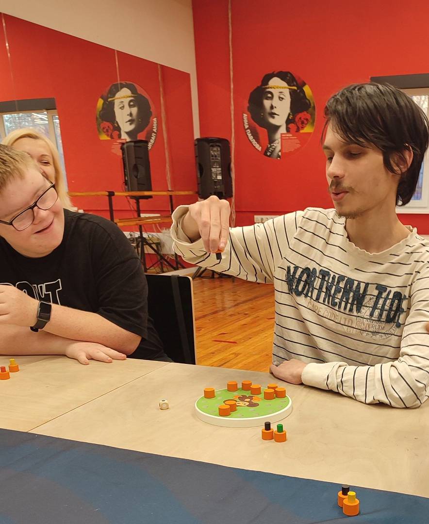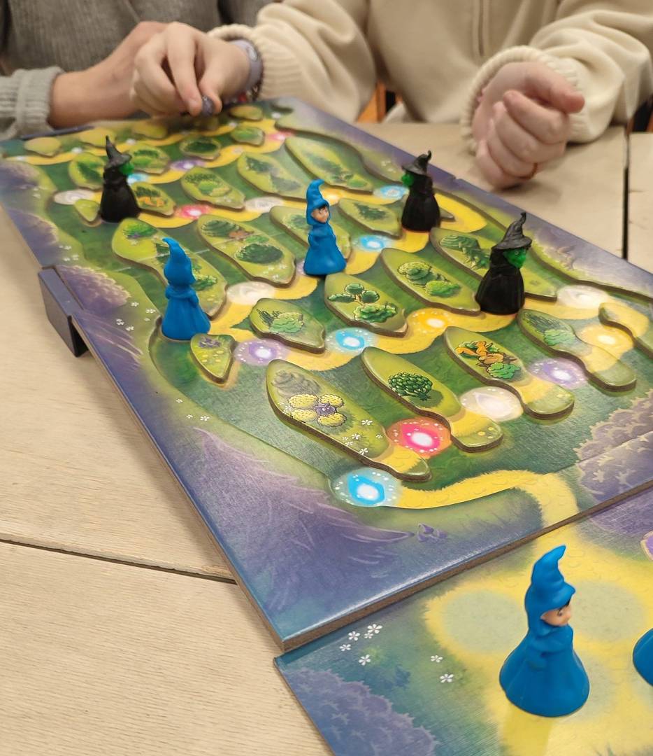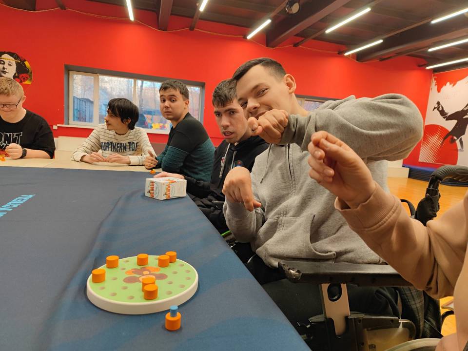 Собрались за большим столом за любимыми настольными играми.