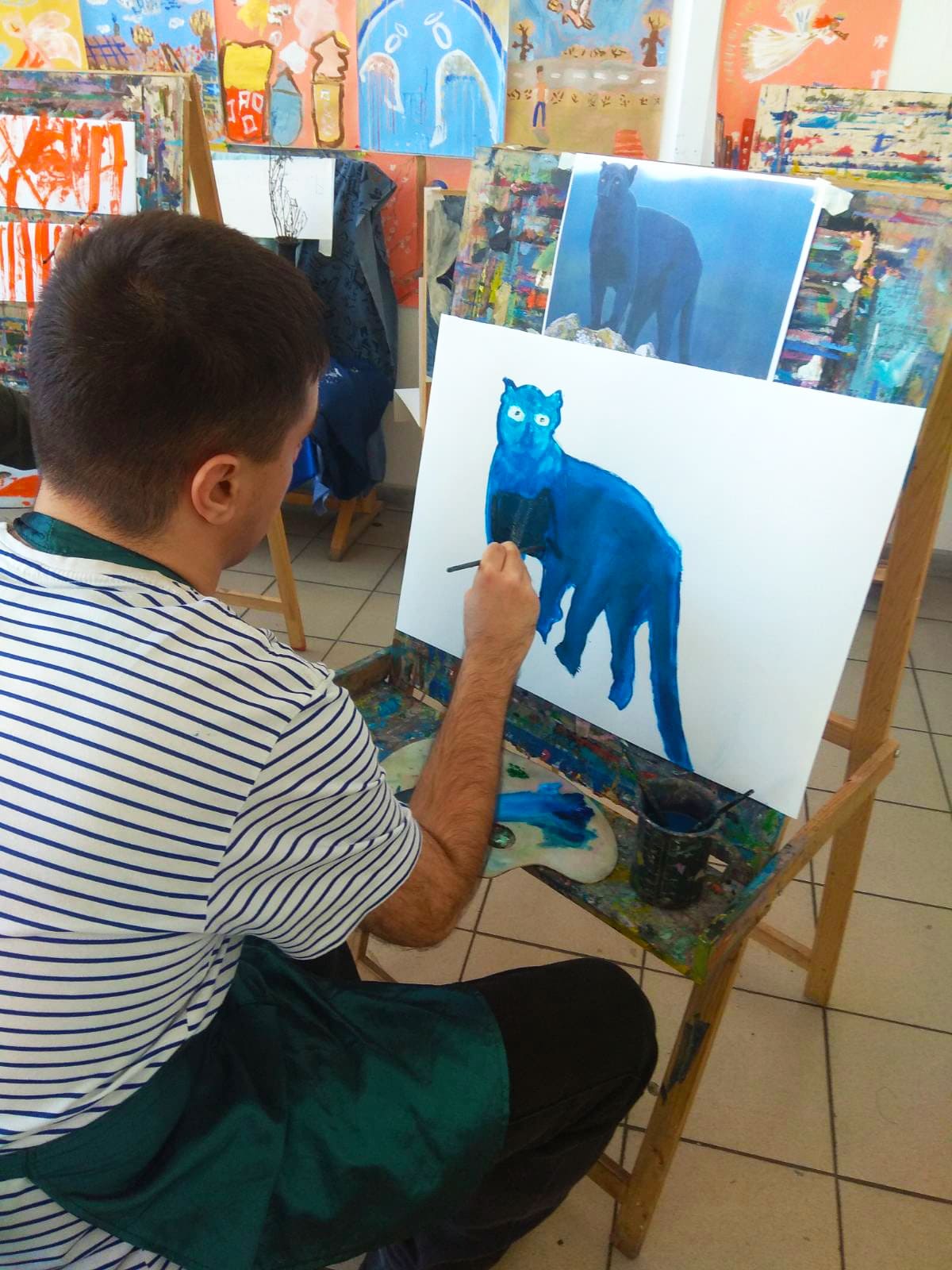 Изменяли стандартный порядок в написании картины. Пантера оставалась не закрашенной, а фон – разноцветными мазками, завитушками, треугольниками и кругами.