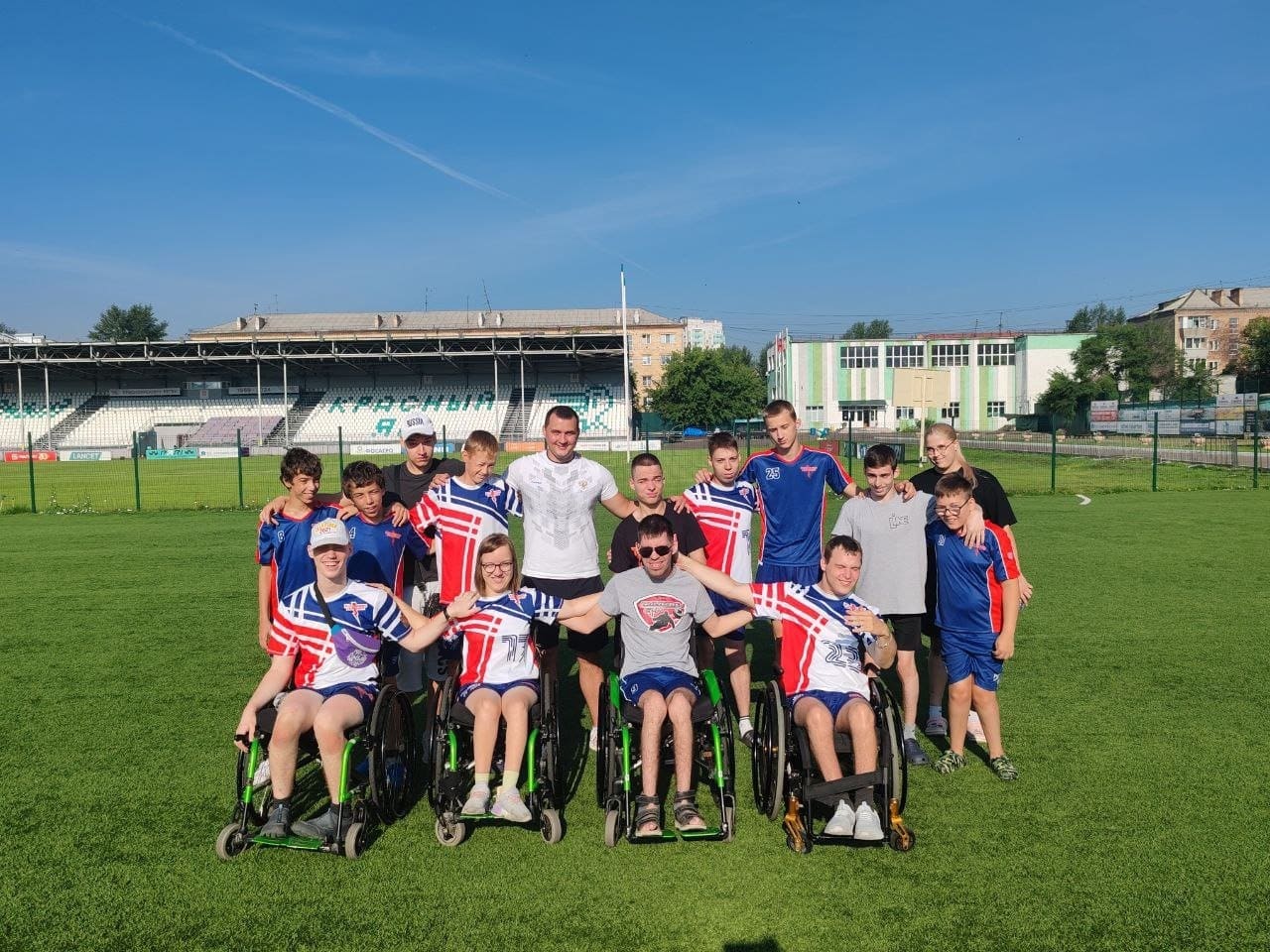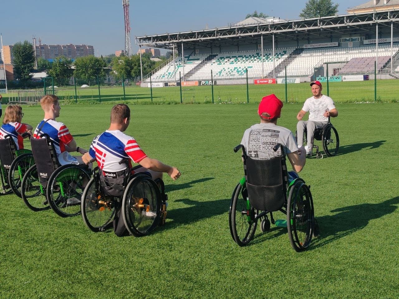 Тренер сборных команд Красноярского края, тренер сборной России по кёрлингу на колясках Денис Анатольевич Кашметов и мастер спорта России по кёрлингу, член сборной команды России и Красноярского края Максим Краснов провели спортивную зарядку для ребят хоккейной команды «Красная молния».