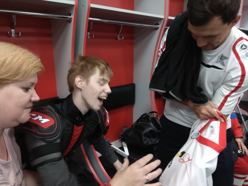 Но на этом сюрпризы не закончились. Дети мечтали о профессиональных клюшках для следж-хоккея. И вот мечта осуществилась! Старый добрый друг «Красной молнии», двукратный чемпион мира по хоккею Александр Сёмин подарил детям новенькие клюшки.