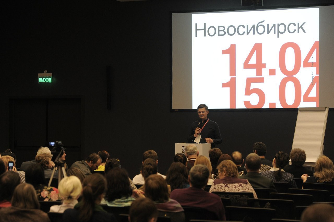 14–15 апреля в г. Новосибирске состоялся форум активных граждан «Сообщество». Это рабочая площадка для взаимодействия общества, бизнеса и власти. Красноярский край был представлен многочисленной делегацией, в составе которой были лидеры НКО, представители бизнеса, СМИ и власти.
