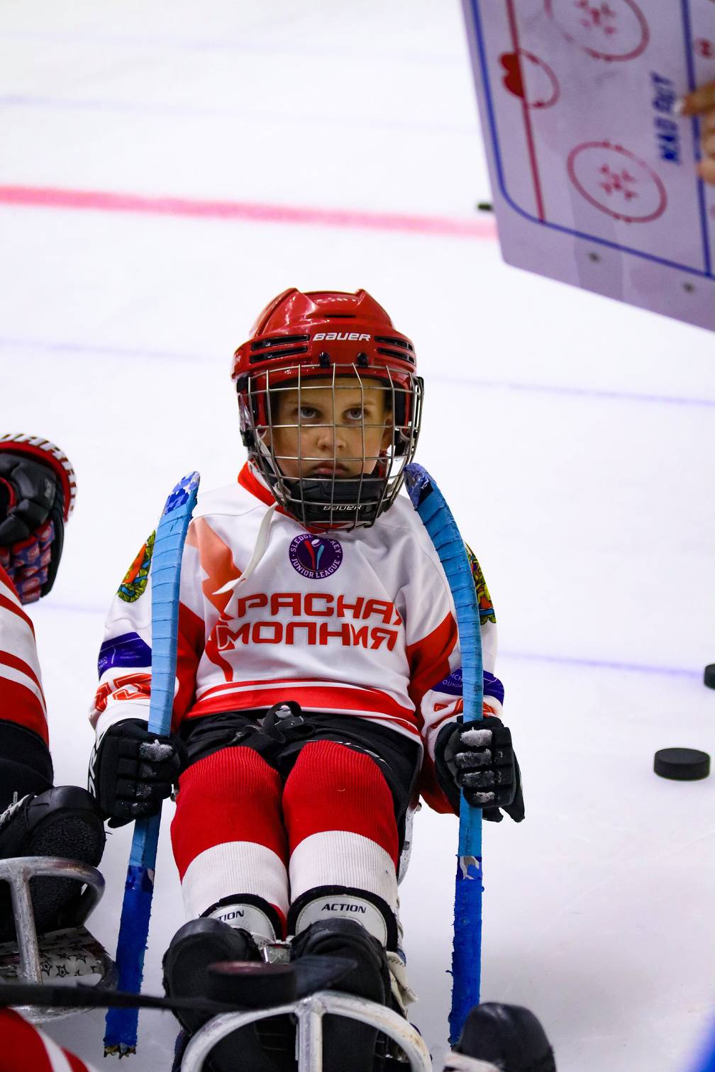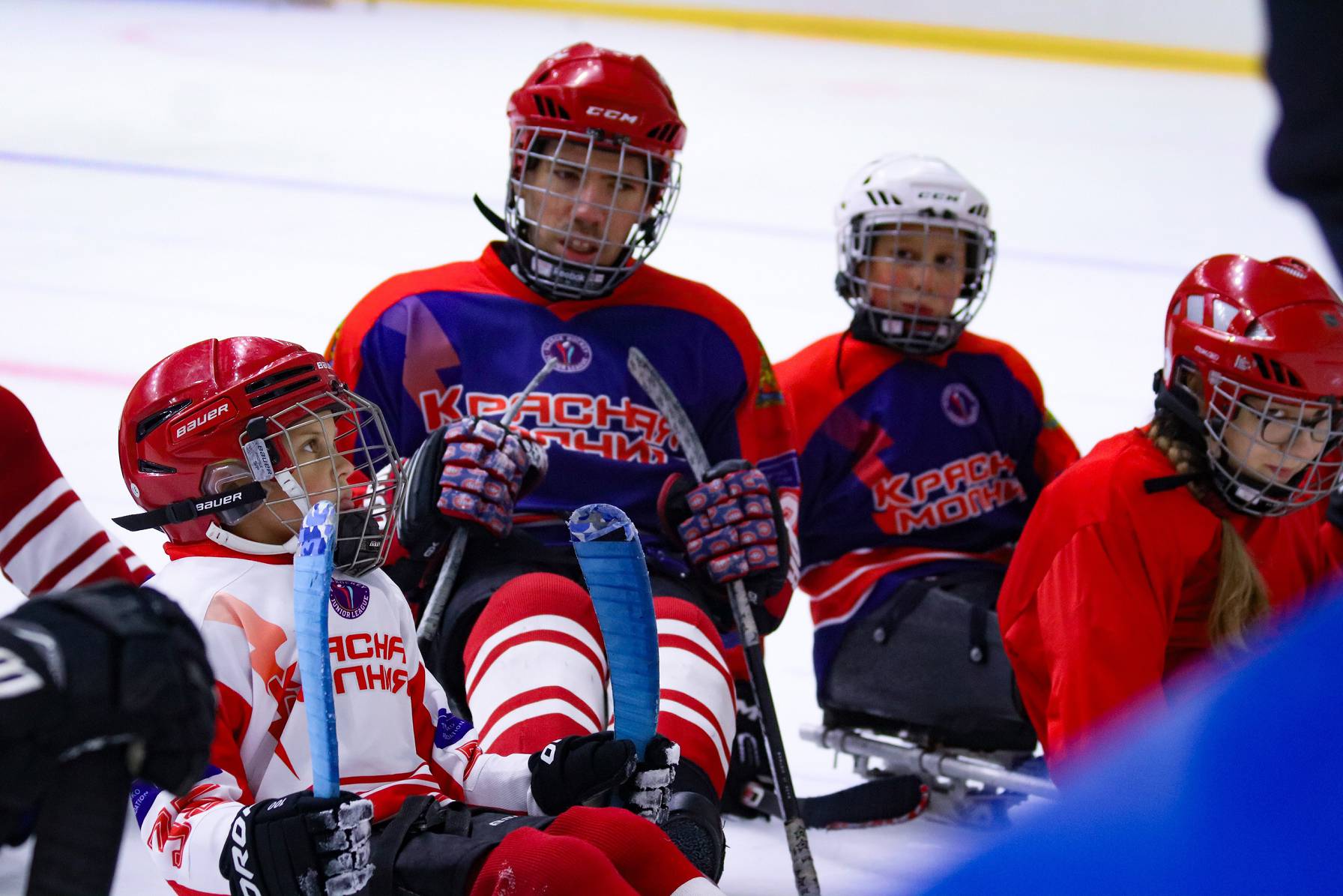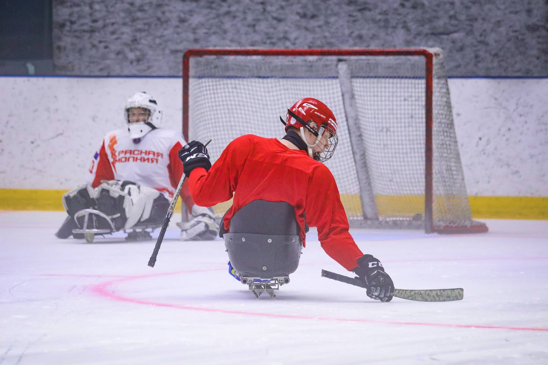 Принимали гостей и рассказывали о следж-хоккее для программы «Недетский спорт».