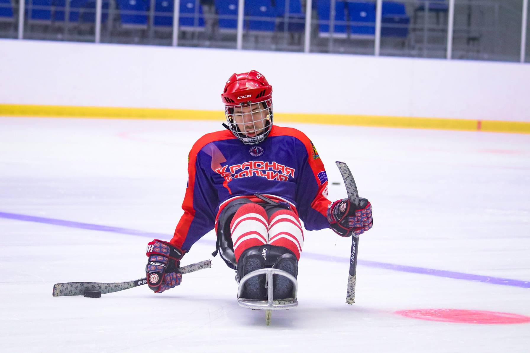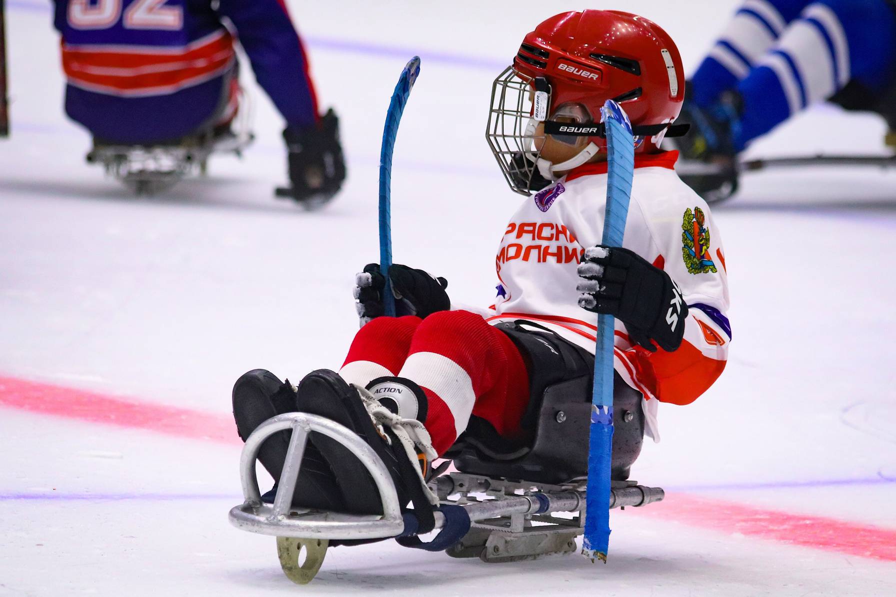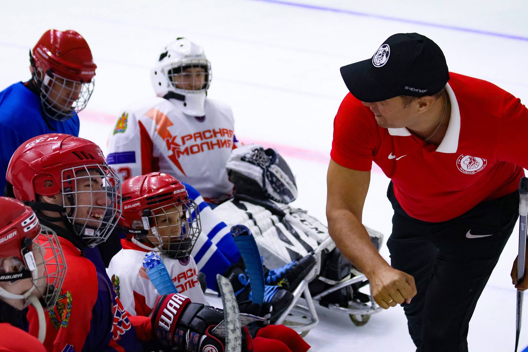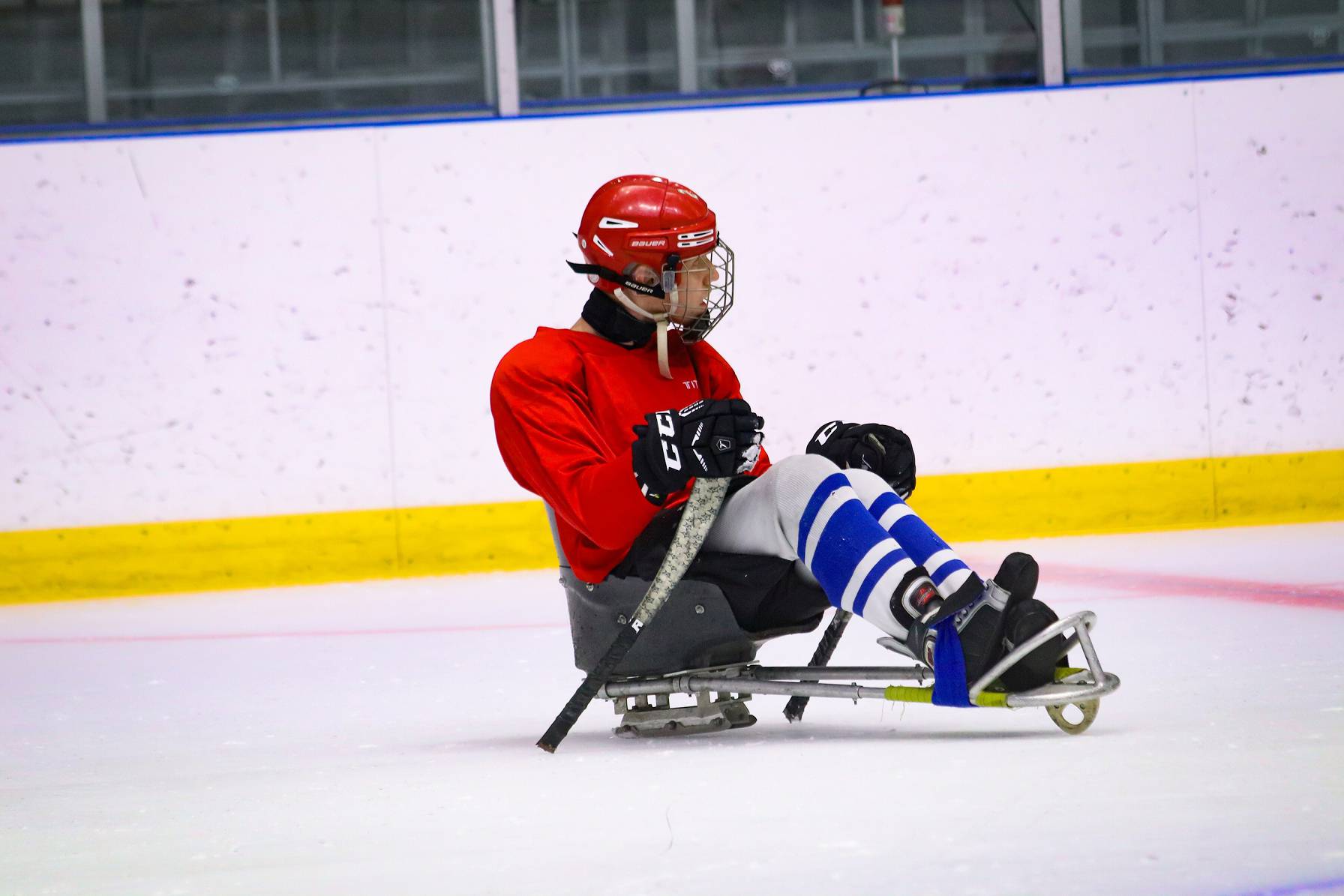 Принимали гостей и рассказывали о следж-хоккее для программы «Недетский спорт».