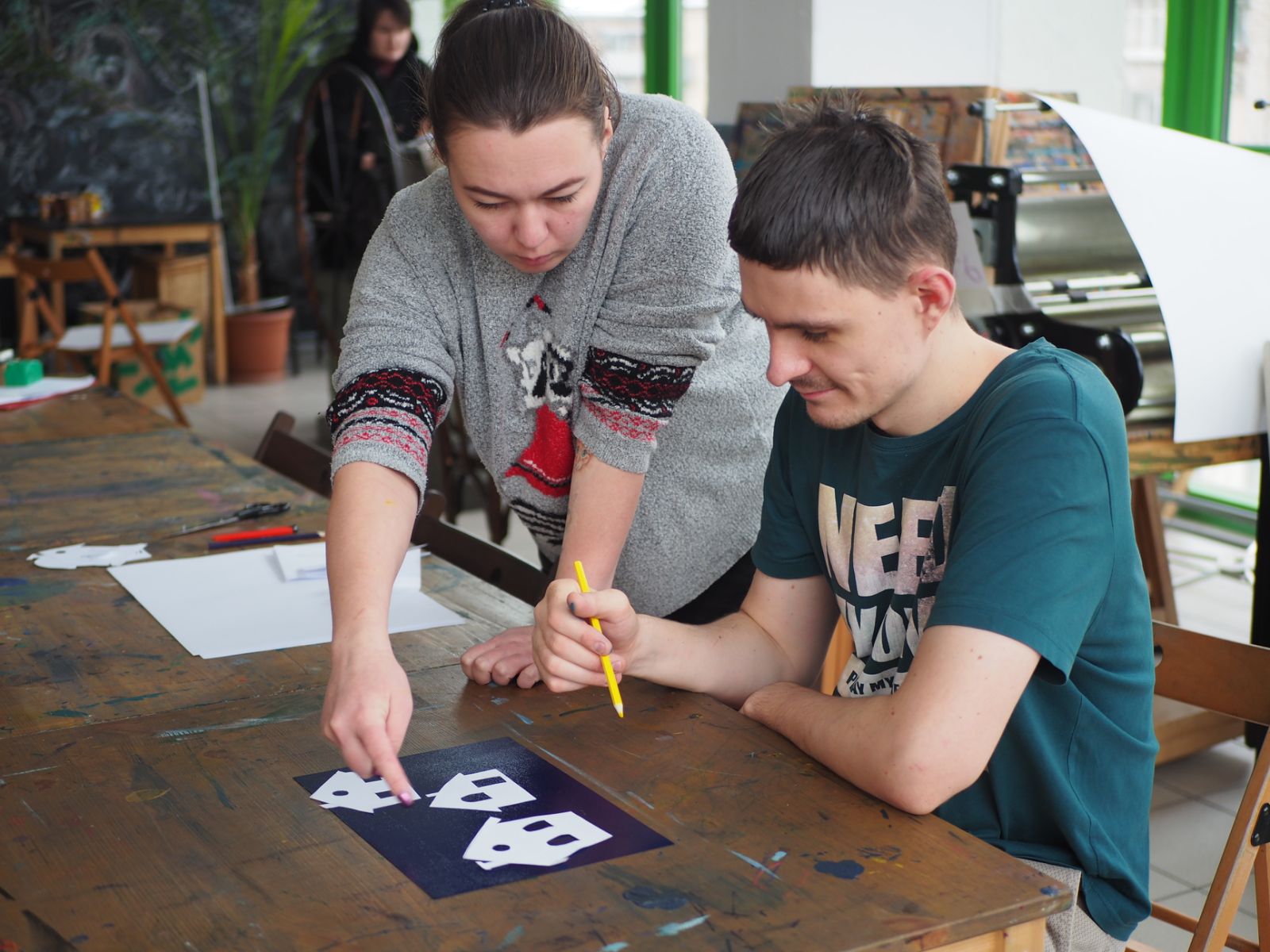Каждое занятие мы осваиваем новые техники. На этот раз это была графика! Точнее вторили в технике Монотипия.