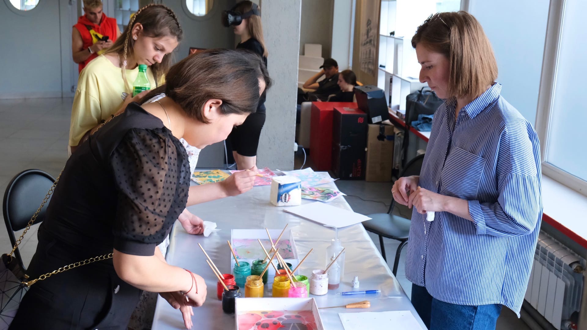 На фестивале нас ждали интересные интерактивные площадки: мы делали музыку, учились рисовать на воде по технике «ЭБРУ» и попали в виртуальную реальность с помощью Vr-очков