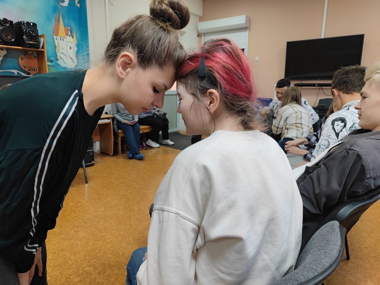 Отрабатывали один из сложных навыков: учились взаимодействовать с партнером: упражнение «зеркало». Очень важно помнить, о партнере, слышать видеть, даже если ты "звезда".