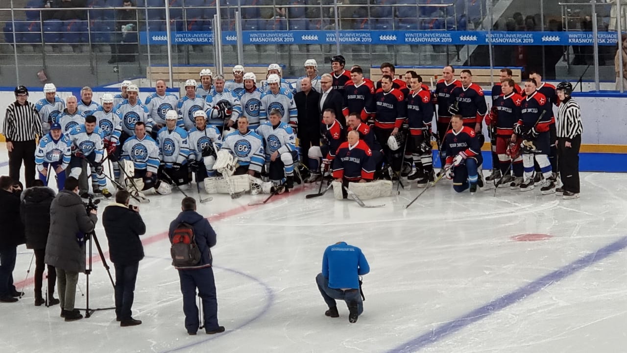 На льду встречались команда «Енисейская Сибирь 60+» и сборная ветеранов «Красная звезда».