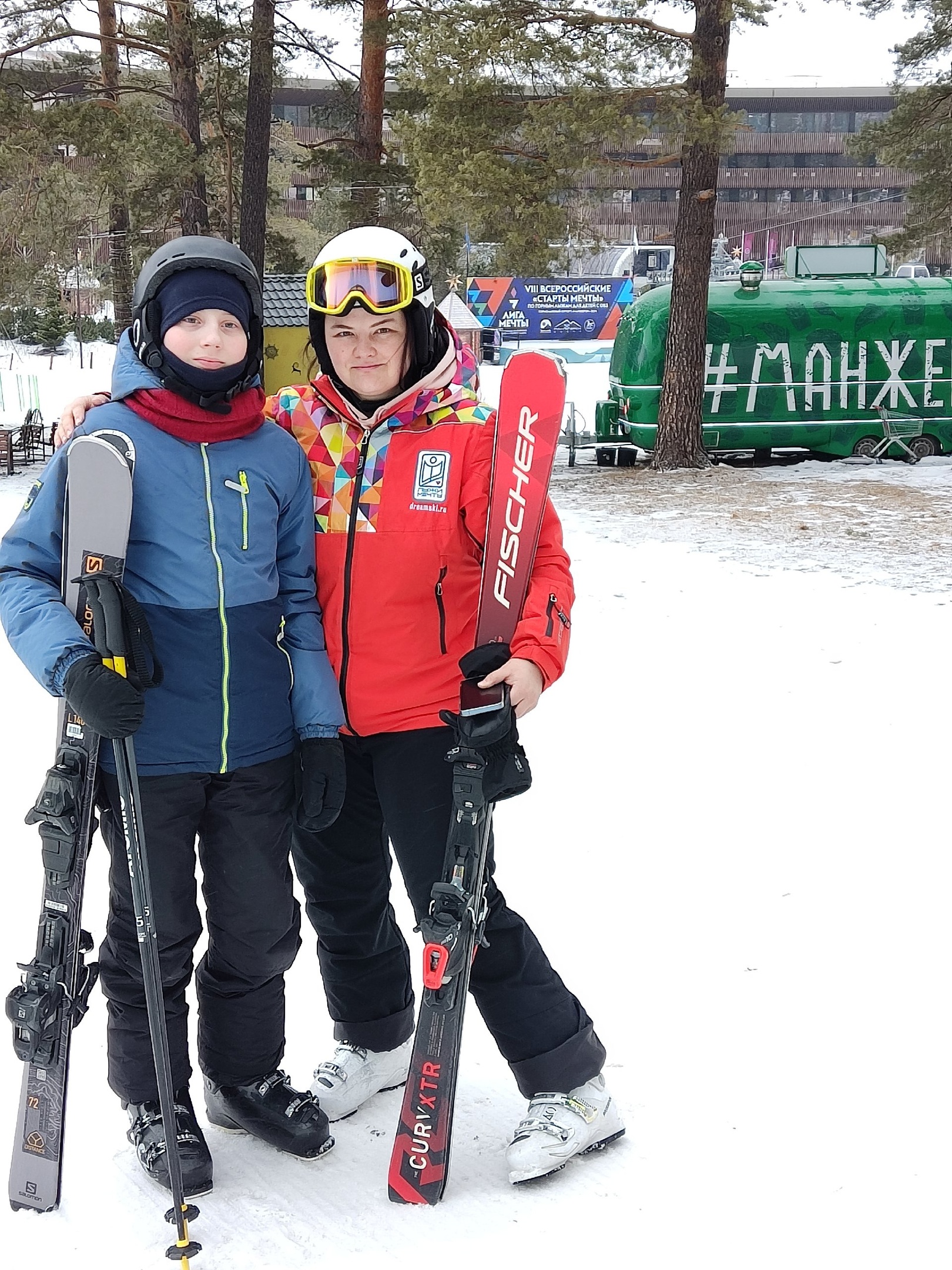 Тренировочный процесс в первый день на всесезонном курорте «Манжерок»! Завтра соревнования. Горнолыжник очень доволен. Ждёт с нетерпением!