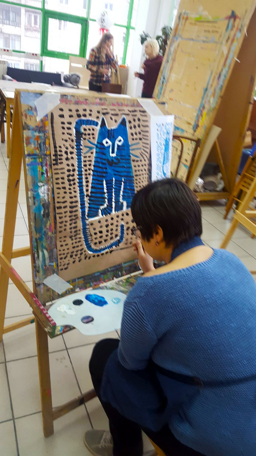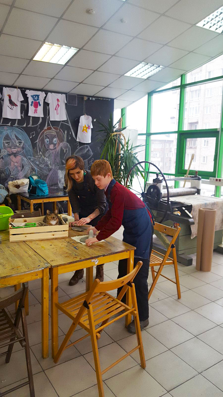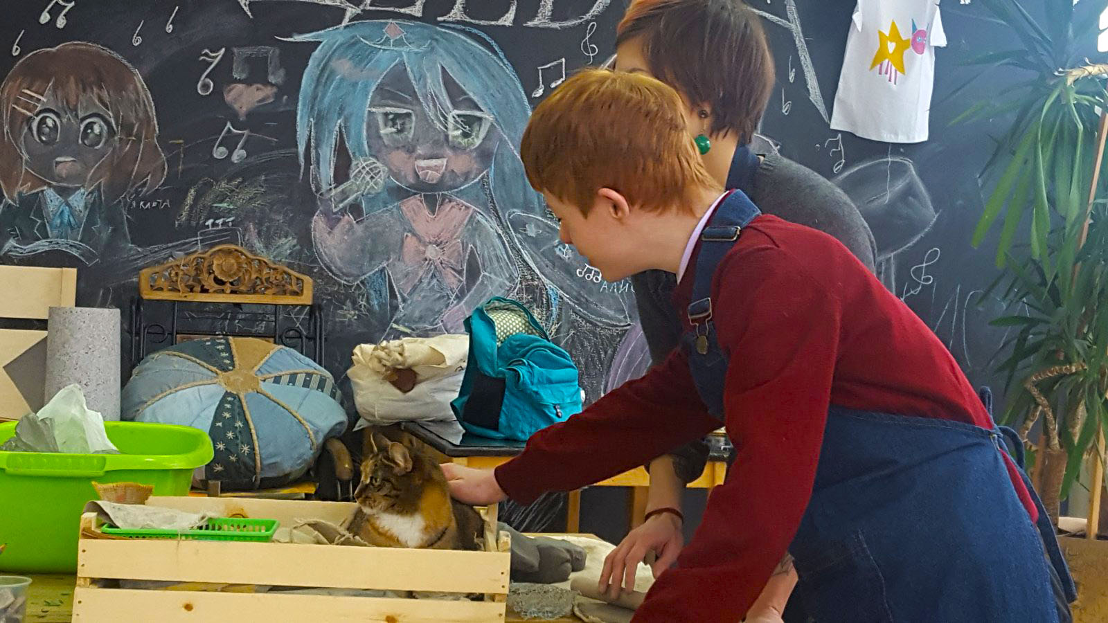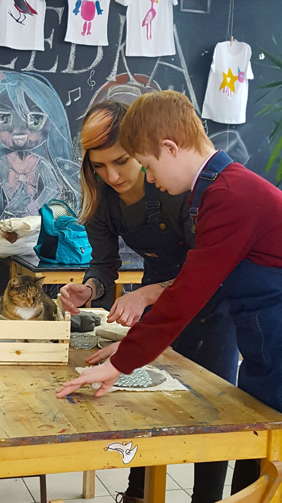Тема котов была раскрыта не только средствами изобразительных способностей студийцев, они изображали котов на холсте, но и лепили из глины неповторимые блюдца (понятно для котов)))