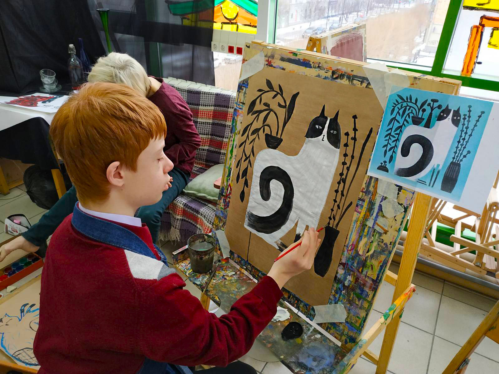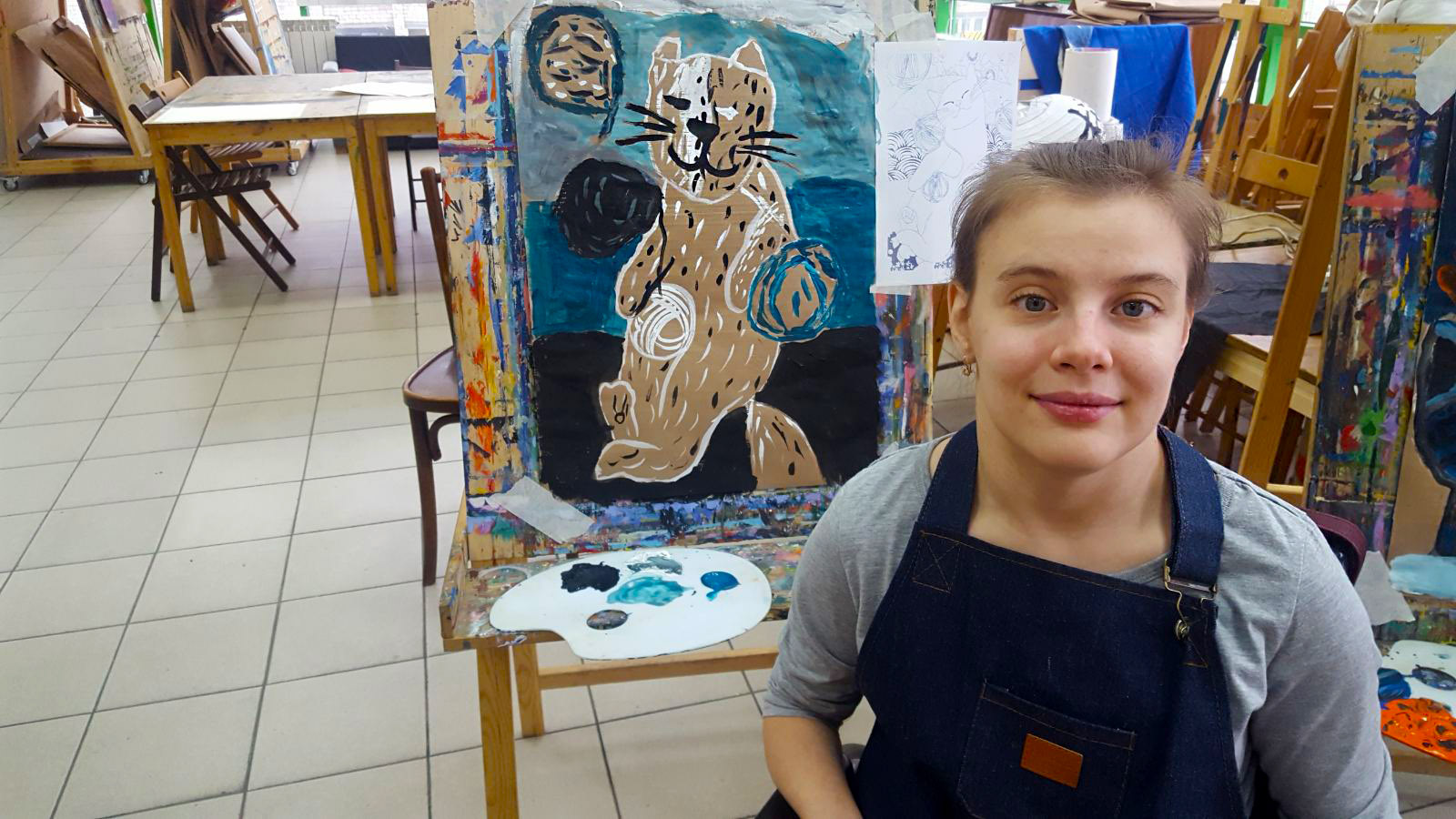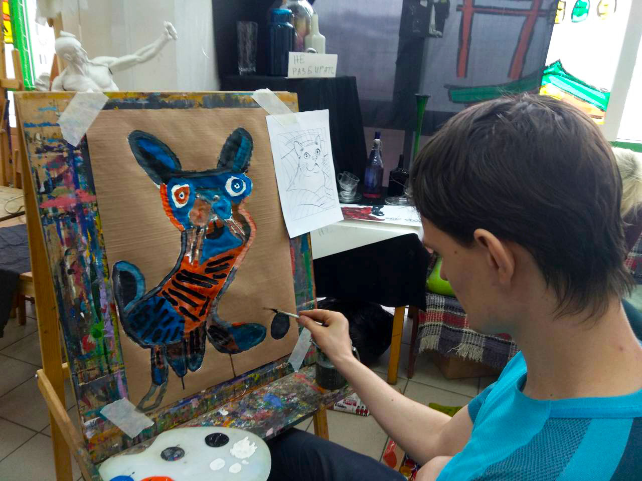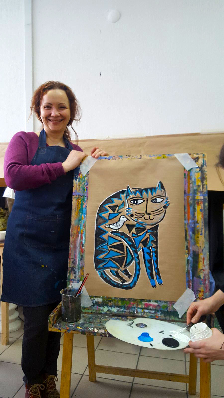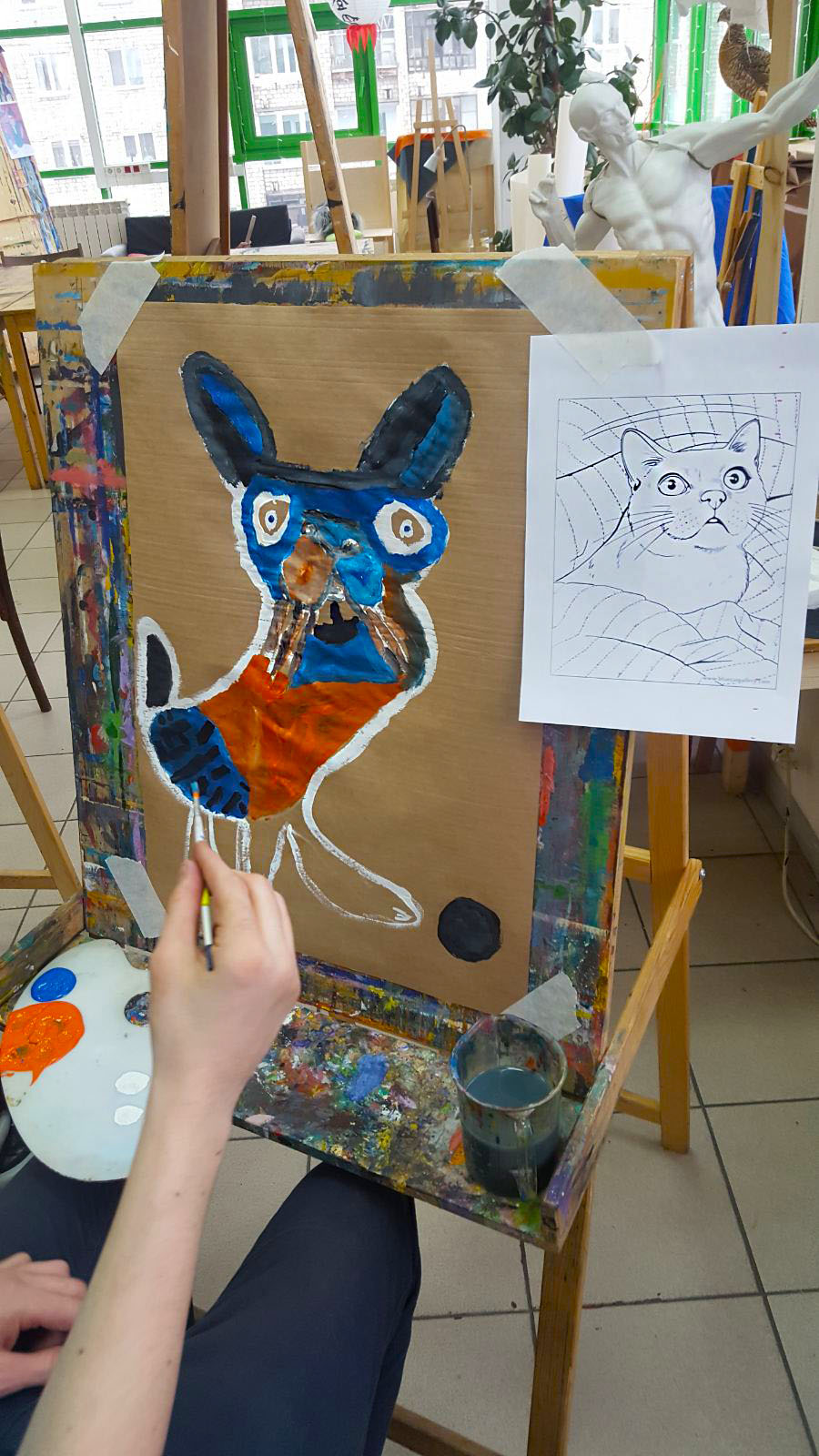 Тема котов была раскрыта не только средствами изобразительных способностей студийцев, они изображали котов на холсте, но и лепили из глины неповторимые блюдца (понятно для котов)))