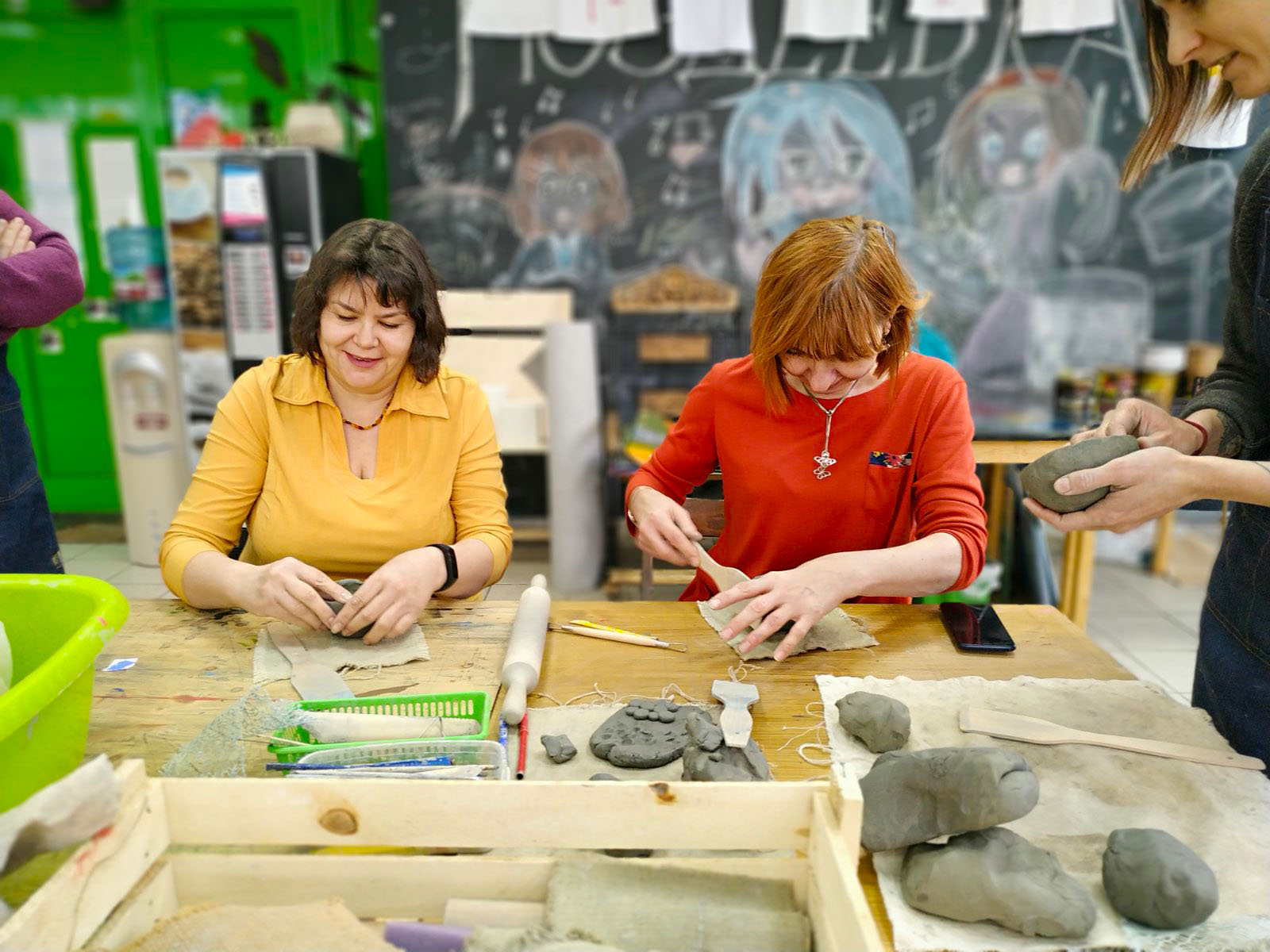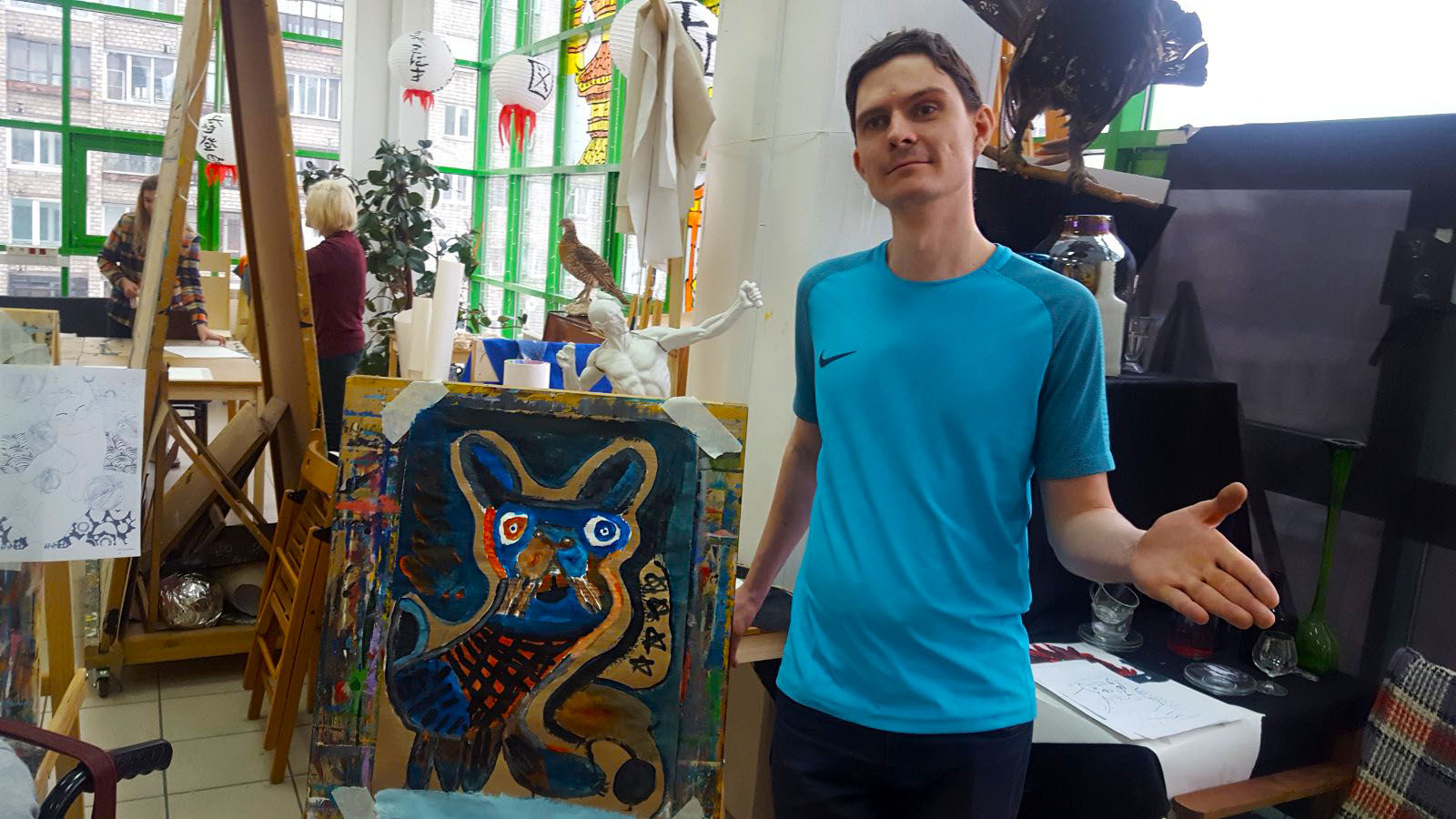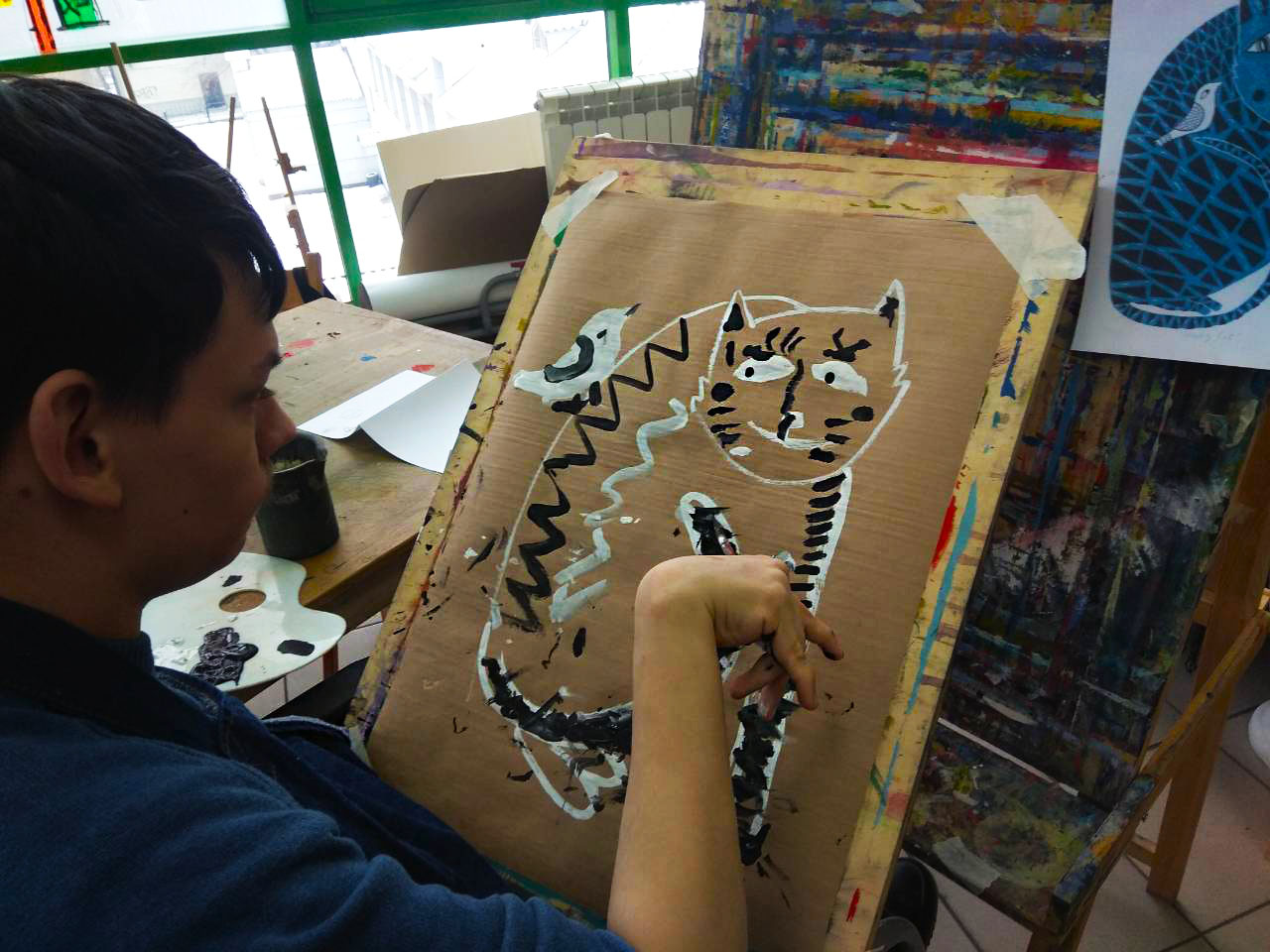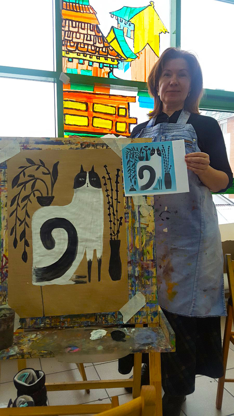 Тема котов была раскрыта не только средствами изобразительных способностей студийцев, они изображали котов на холсте, но и лепили из глины неповторимые блюдца (понятно для котов)))