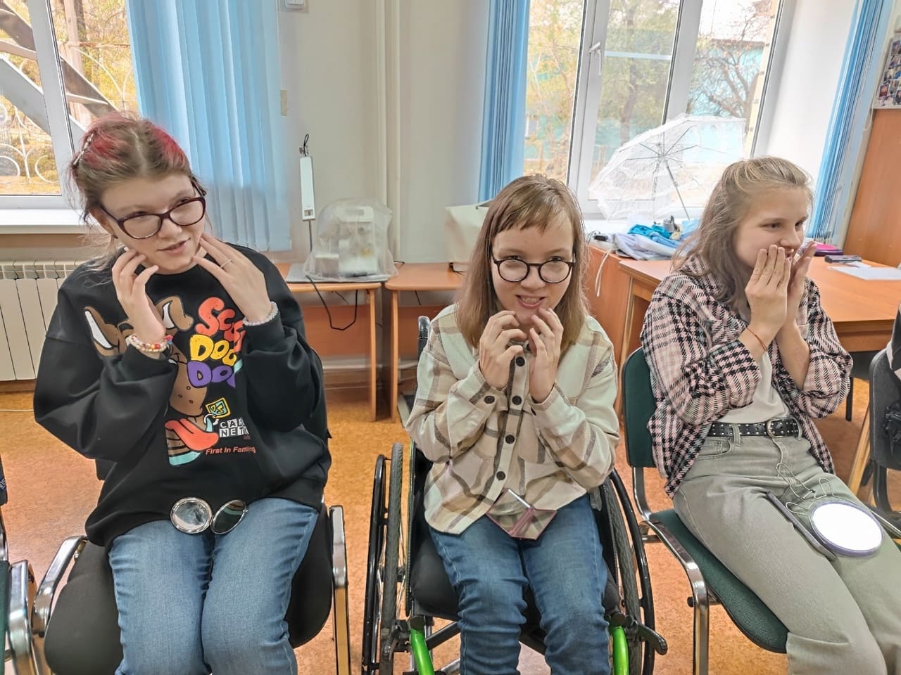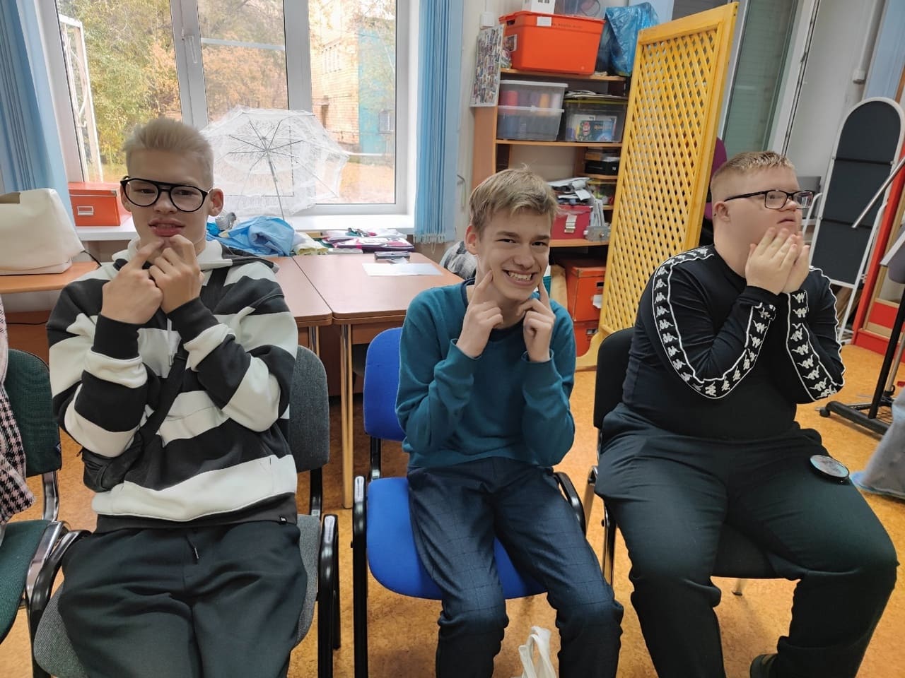 Найдете фото ребят, где выполняли задание педагога нахмурить брови?