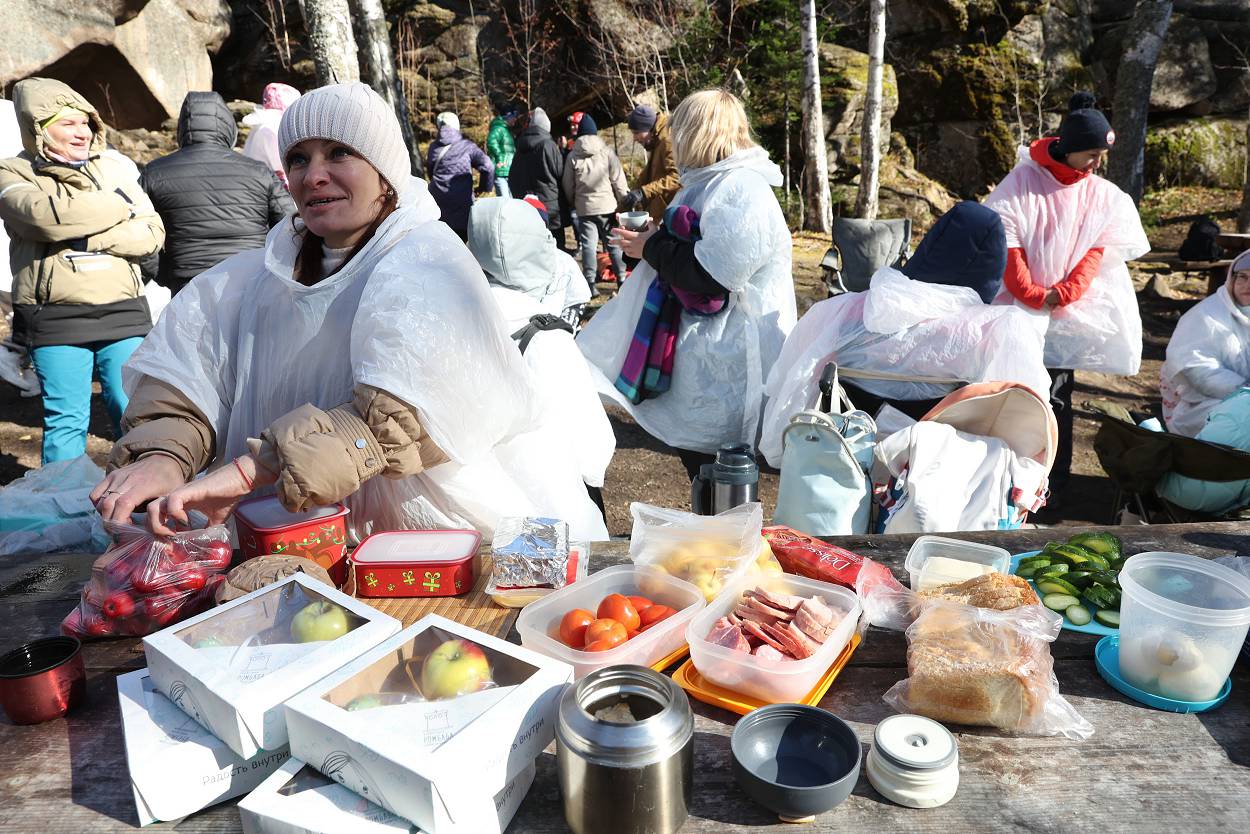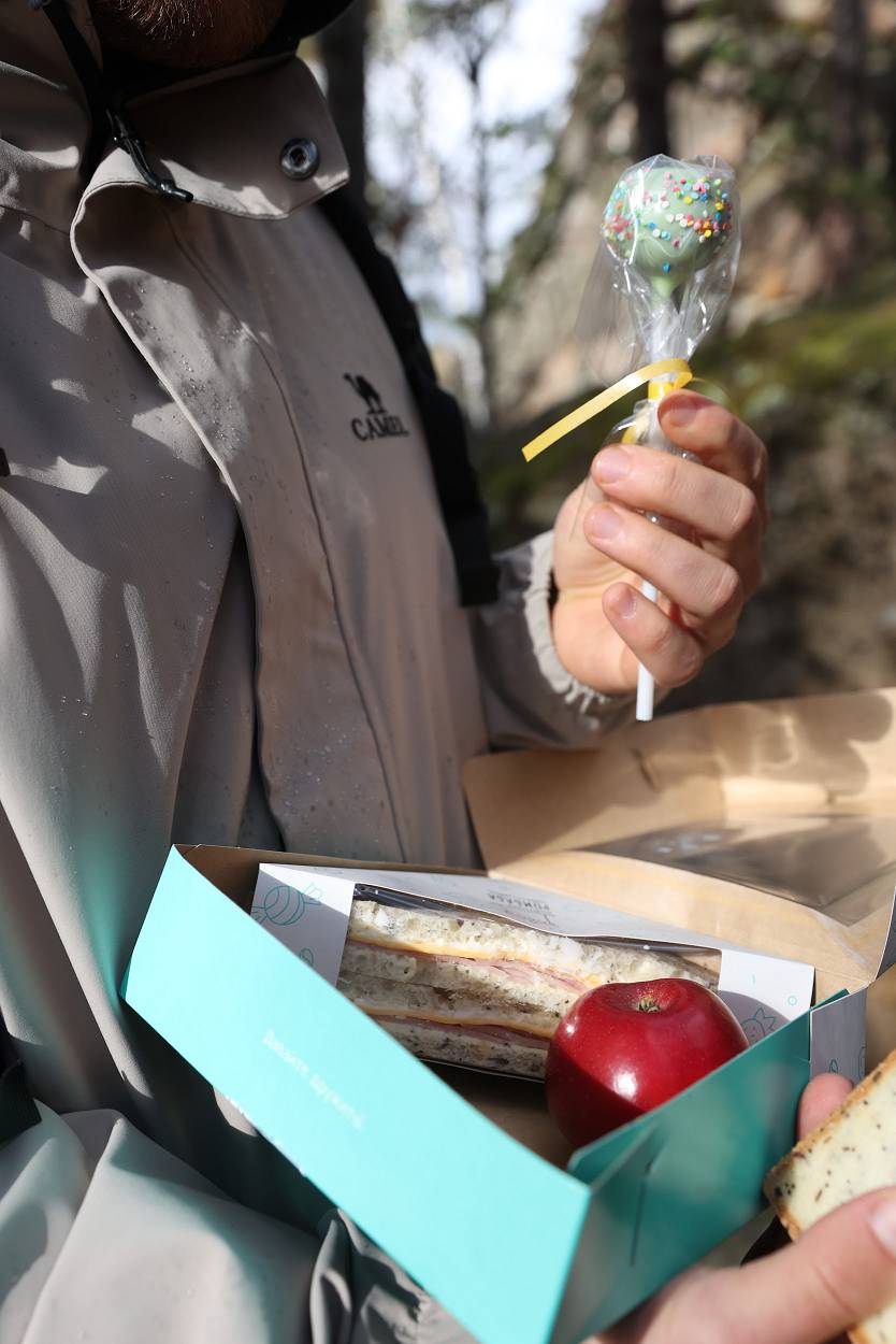 А вся группа туристов тоже не скучала. Прослушав увлекательную информацию от экскурсоводов Игоря и Полины наши путешественники разбились еще на 2 группы, первая отправилась покорять каменоломню и узнавать более детально историю Столбов. Вторая придумывала игры и готовила пикник на свежем воздухе. Здесь отдельную благодарность выражаем Кондитории «РомБаба» за предоставленные вкусные ланч-боксы для всех участников.