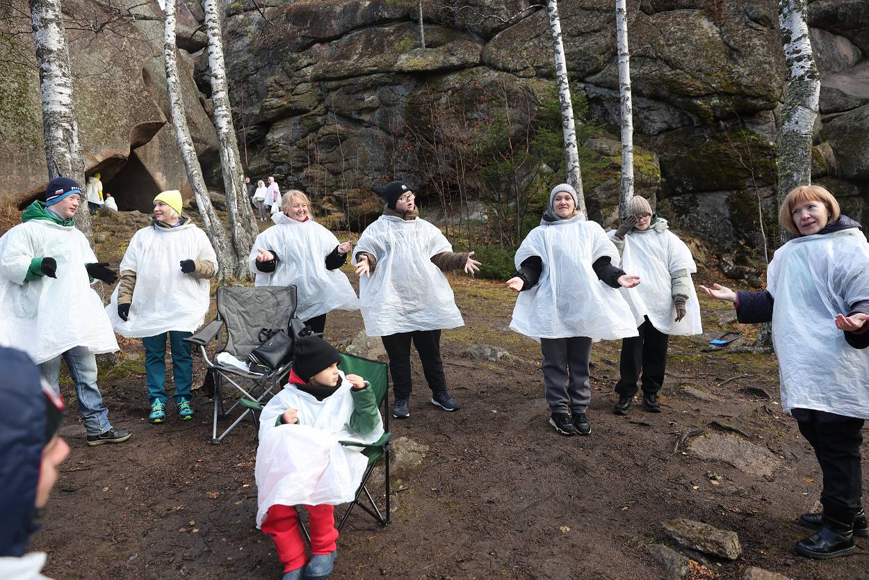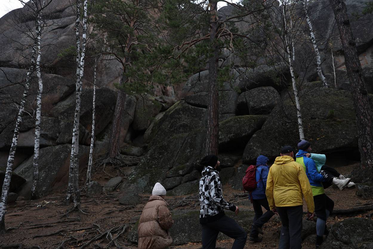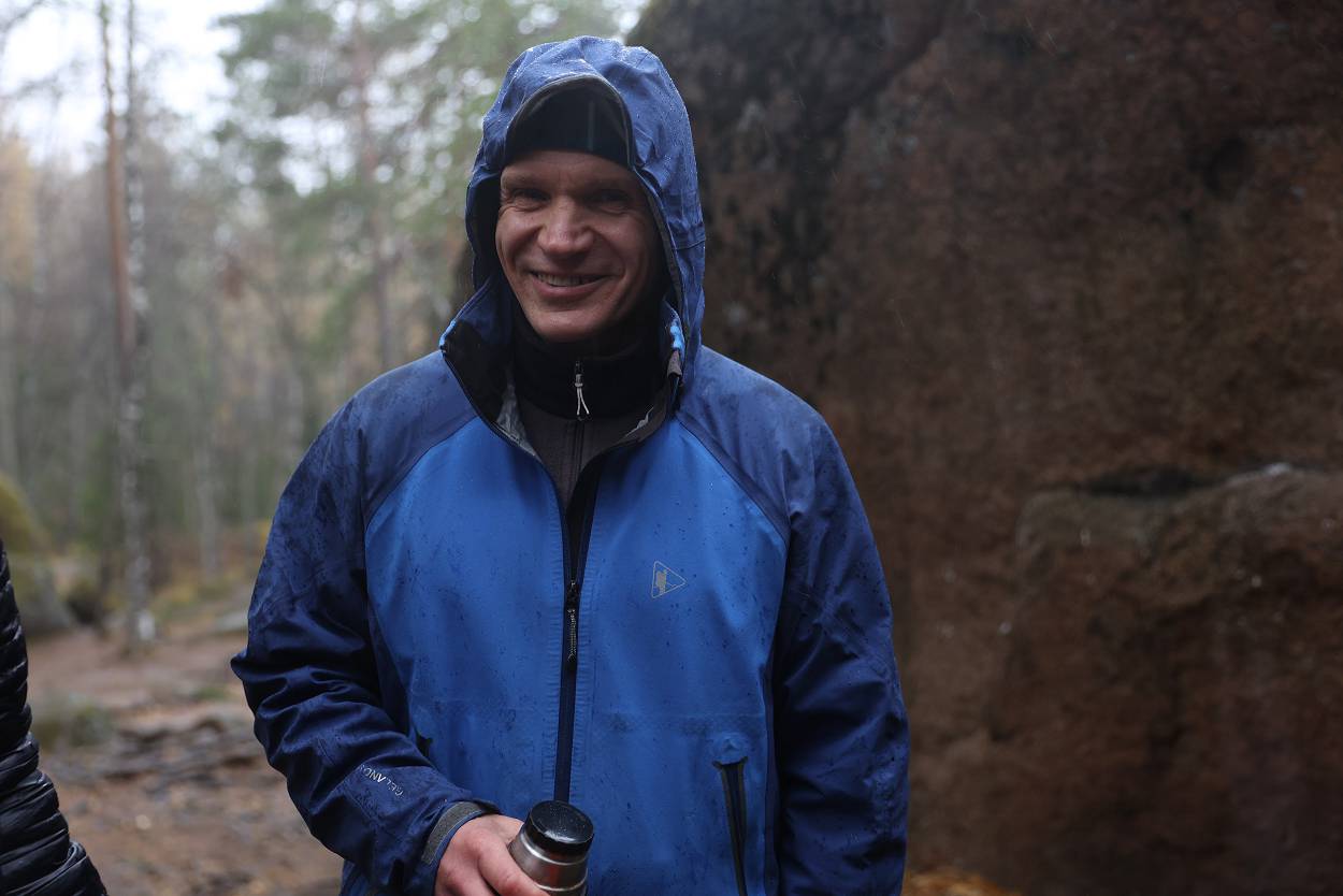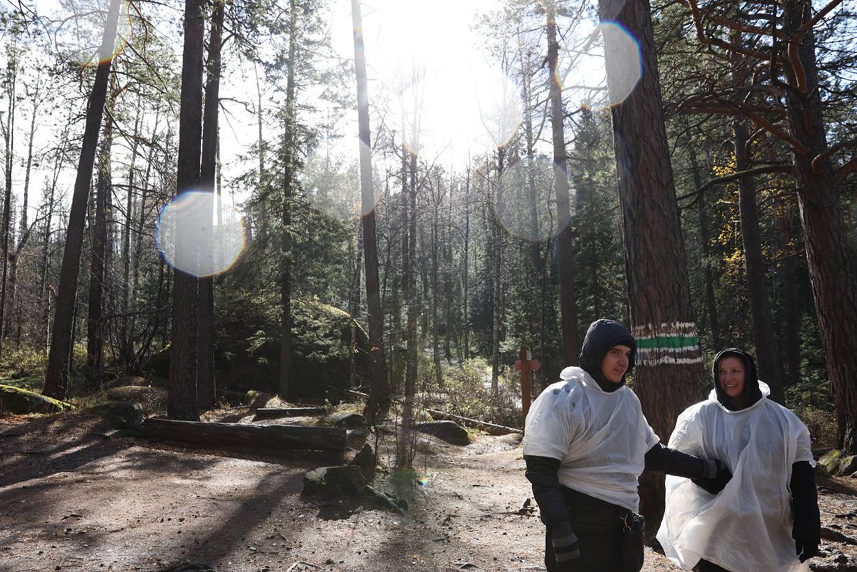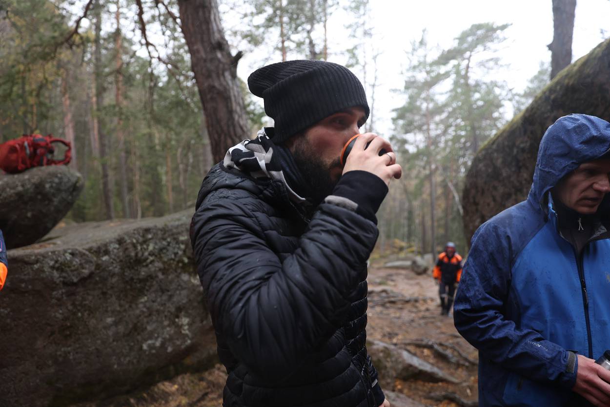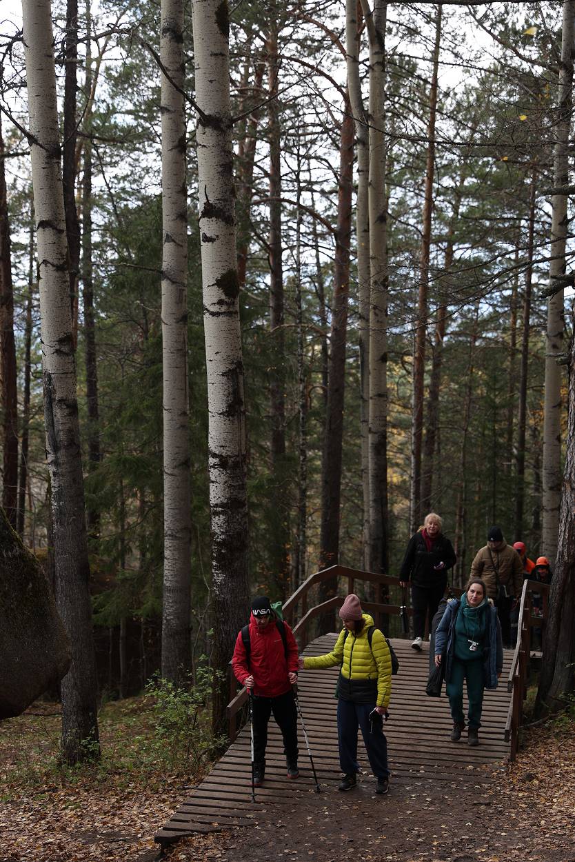 За время пребывания у скалы мы не только играли, узнавали о проектах, но и смогли еще познакомиться с разнообразием «климатических природных проявлений» – от прохлады осеннего утра, со слегка проглядывающим солнышком до резко начинающегося дождя, переходящего в снег с ветром, и снова солнышко. Но все участники стоически перенесли проверку на прочность и каждого можно назвать «особым столбистом».