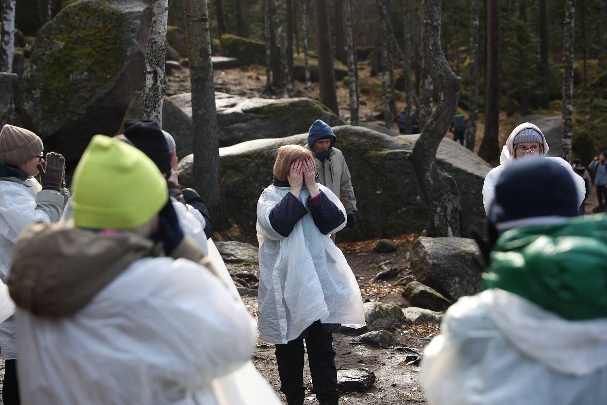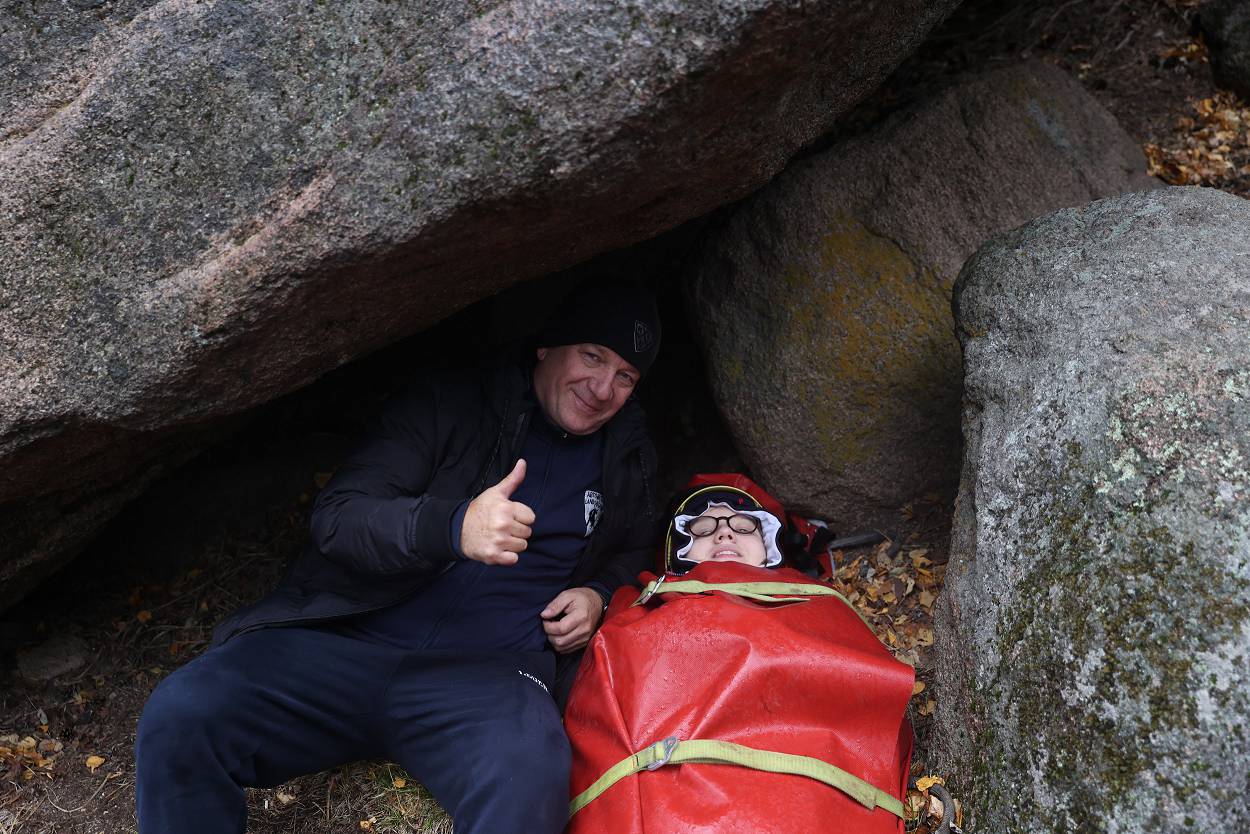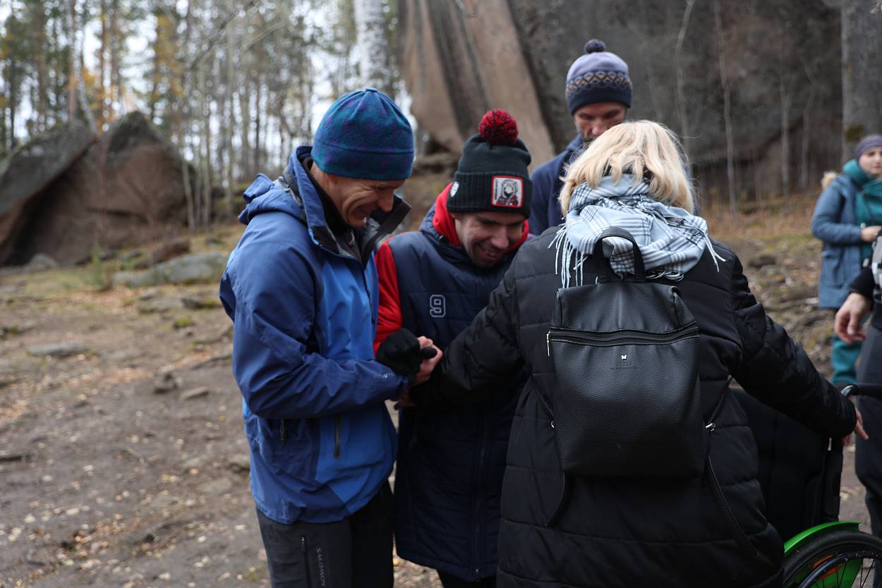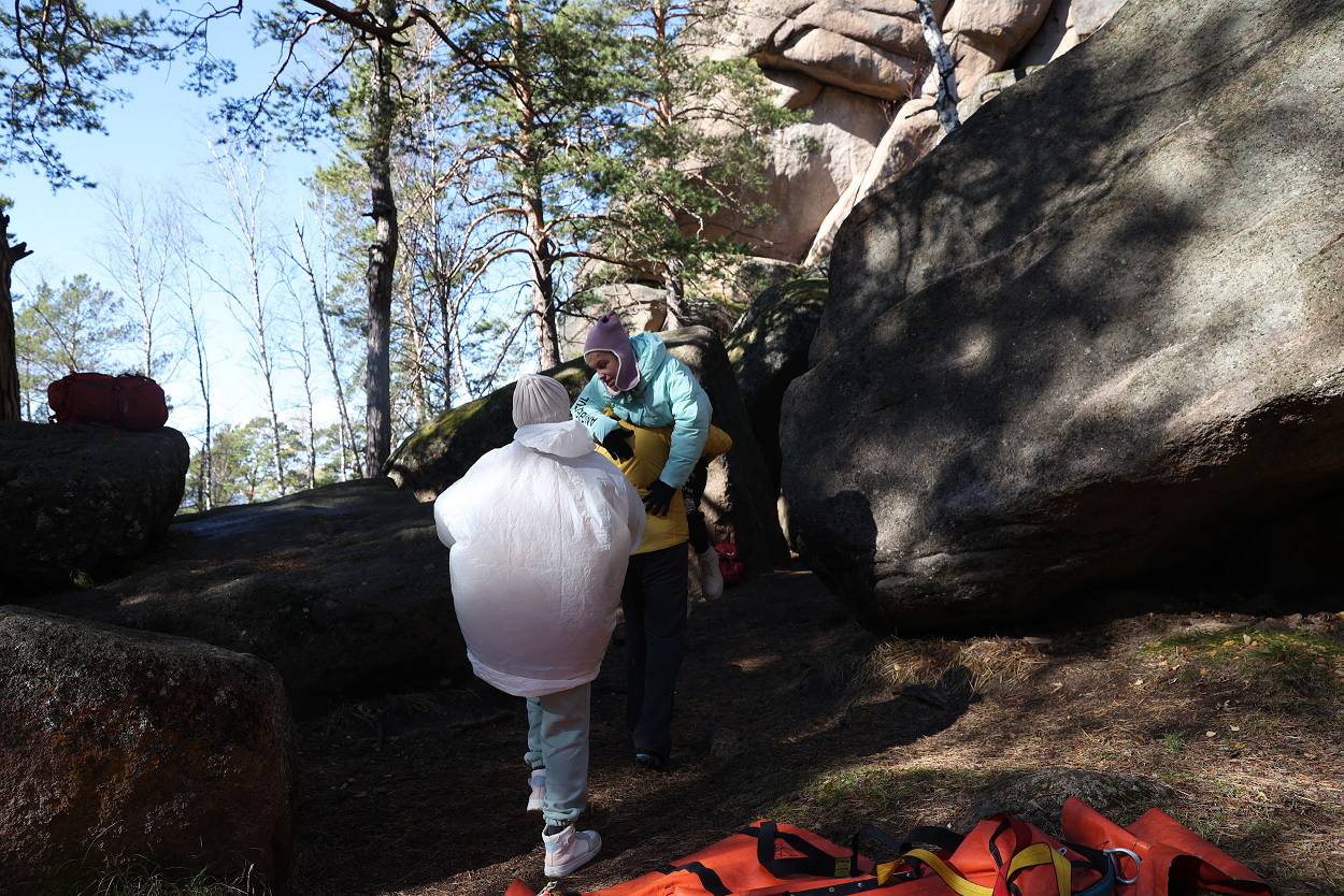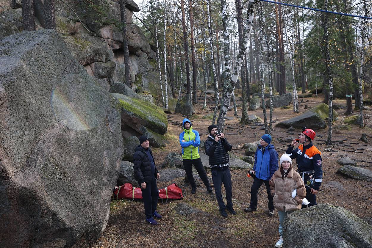 За время пребывания у скалы мы не только играли, узнавали о проектах, но и смогли еще познакомиться с разнообразием «климатических природных проявлений» – от прохлады осеннего утра, со слегка проглядывающим солнышком до резко начинающегося дождя, переходящего в снег с ветром, и снова солнышко. Но все участники стоически перенесли проверку на прочность и каждого можно назвать «особым столбистом».