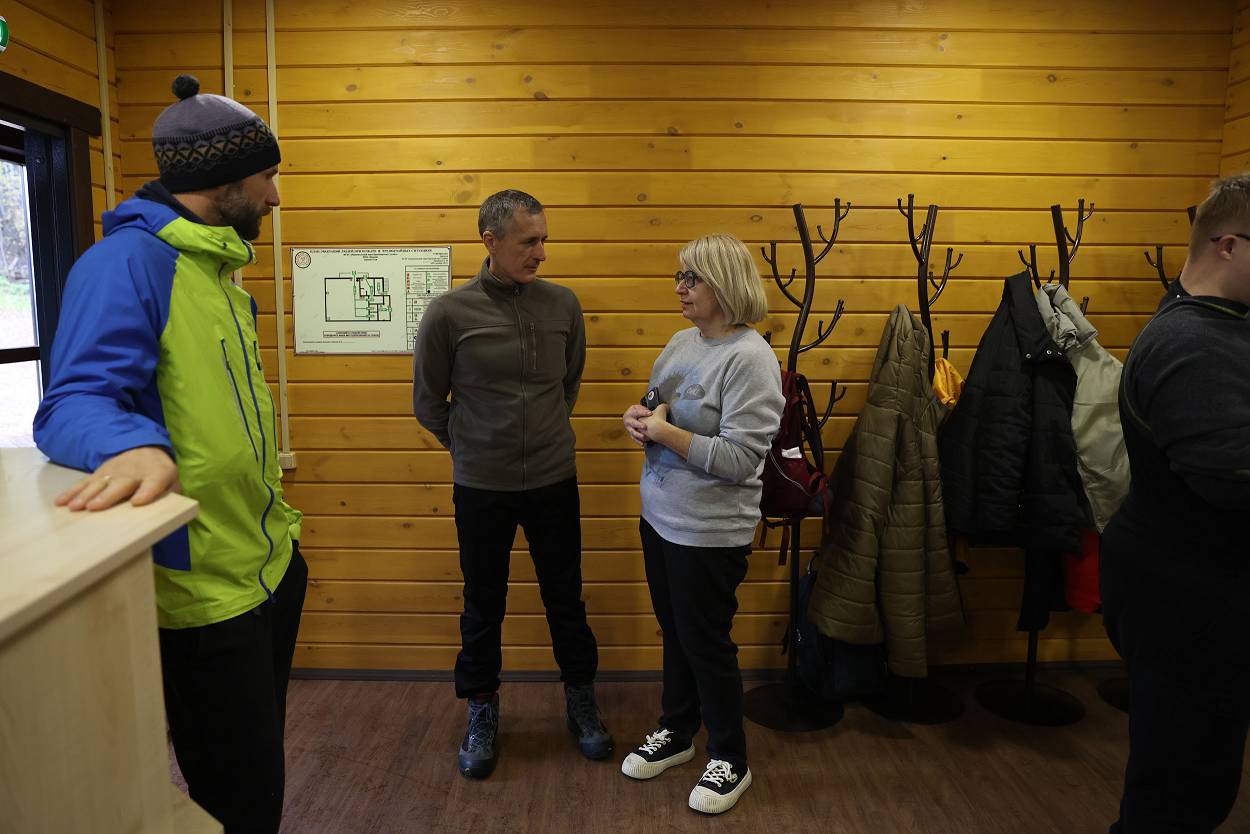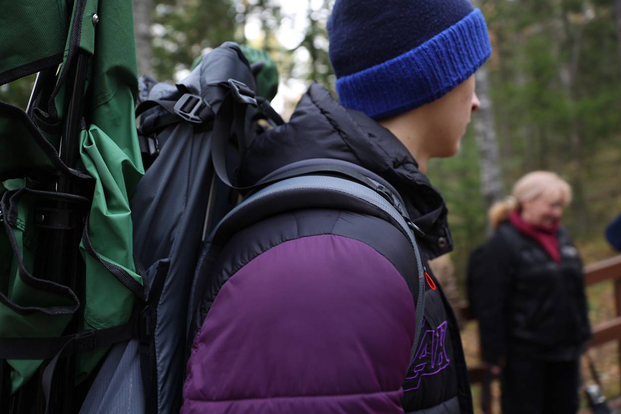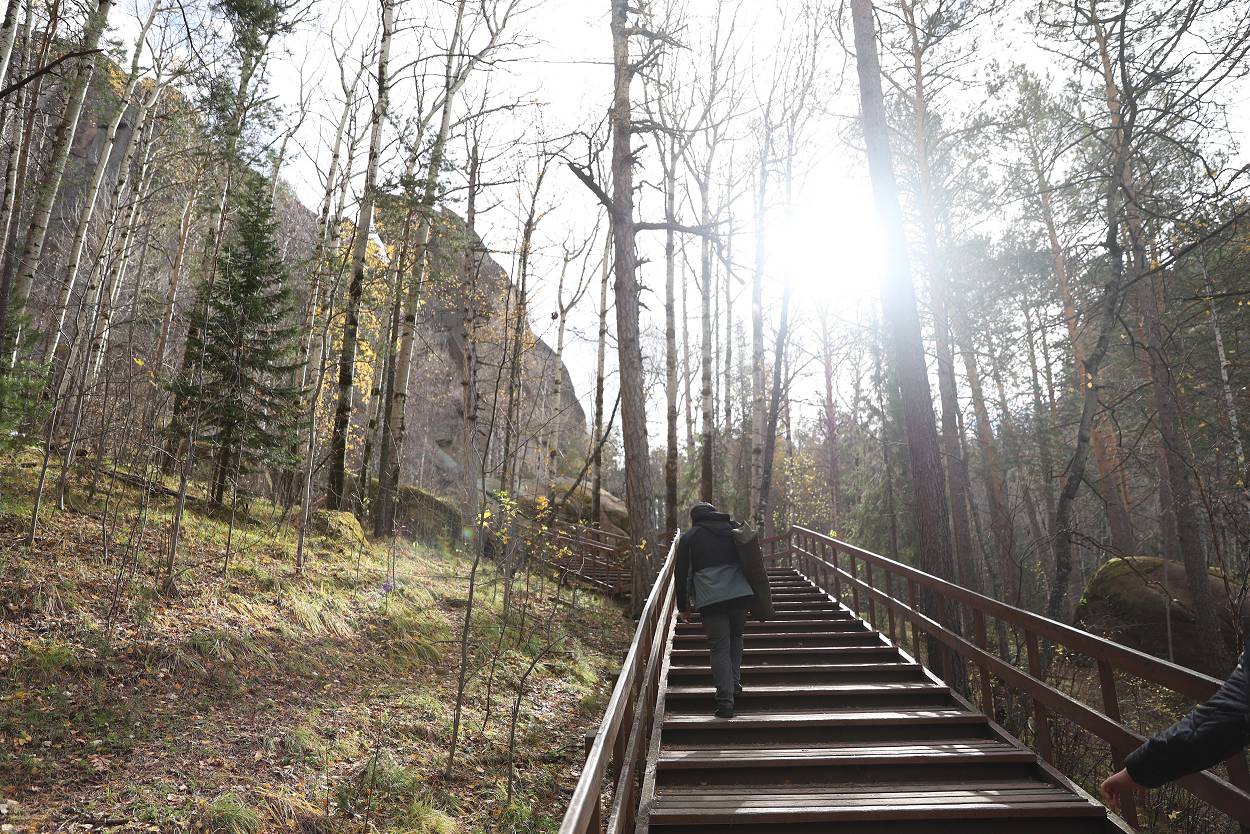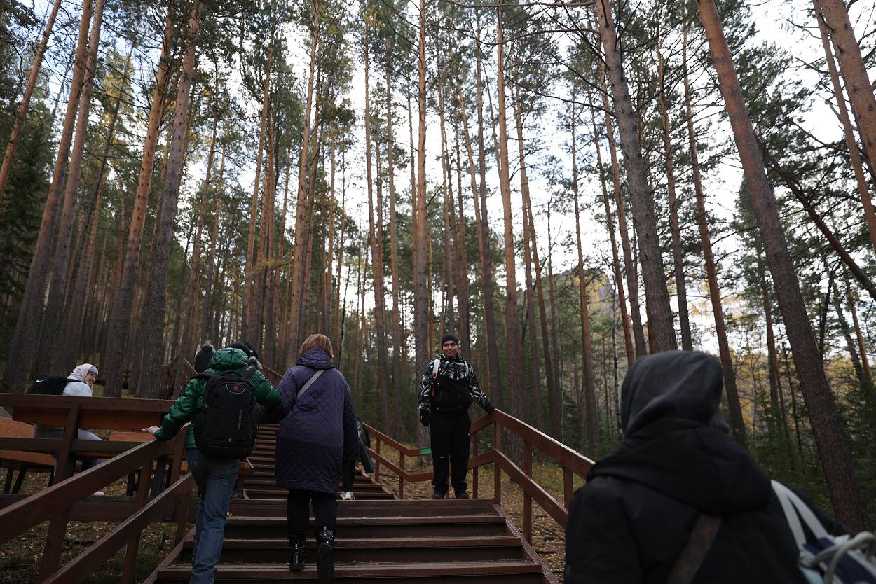 Ранним утром группа путешественников в сопровождении команды проекта «Столбы мечты», инициатором и соавтором которого является Рамиль Сайфутдинов, прибыли в научно-познавательный комплекс «Нарым», где экскурсоводы Игорь Ковач и Полина Арефьева рассказали о национальном парке, провели увлекательную игру о животных, населяющих заповедник и отправились до Перевала и к лестнице до скального района (о ней расскажем чуть позже.) У Первого Столба группа расположилась на привал, а две смелые девочки Настя и Варя, приготовились для подъема на скалу.