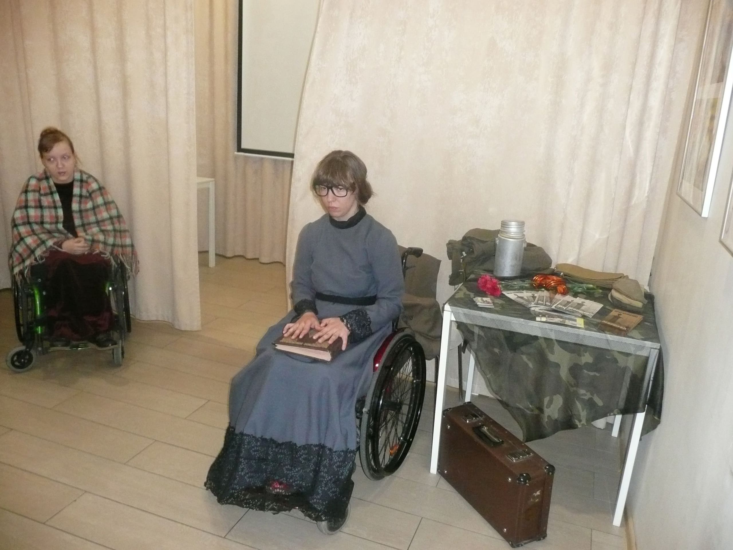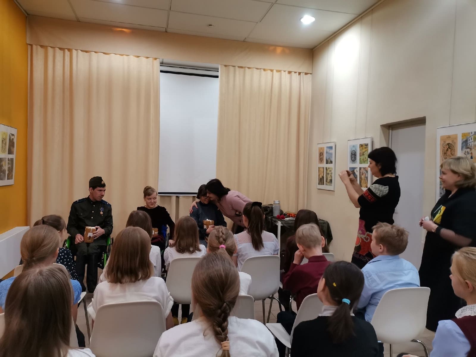 Сегодня в Городской детской библиотеке им. С.В. Михалкова показали выездную версию спектакля «Ленинград» для учеников 4 класса МАОУ Гимназия №4 города Красноярска. По окончании рассказали ребятам о спектакле, провели небольшой мастер-класс, желающие фотографировались с реквизитом спектакля, пригласили ребят к нам на спектакли.