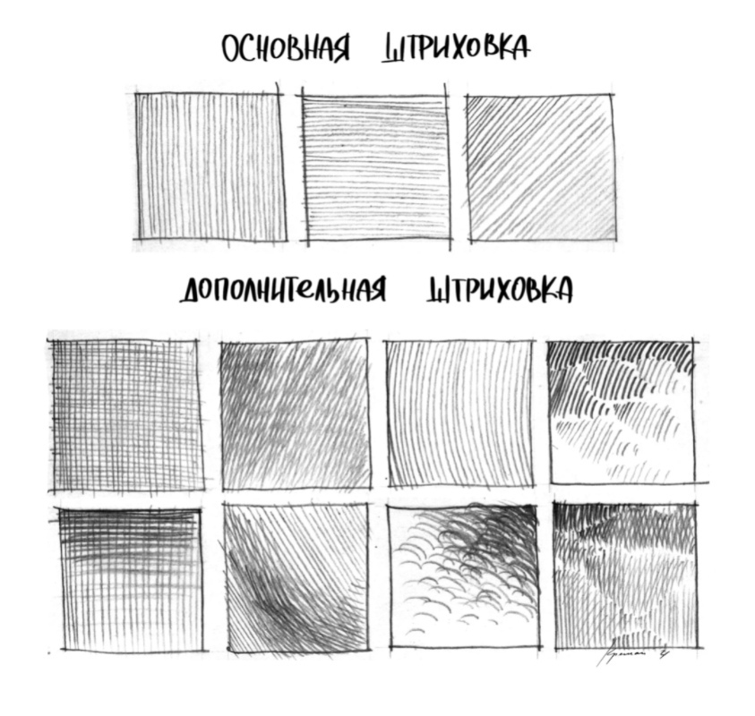 Расстояние между штрихами и нажим должны быть одинаковыми. Суть штриховки в том, чтобы показать градацию оттенков карандаша от светлого до темного. И делается это не только нажимом, а дополнительными штриховками, слой за слоем.