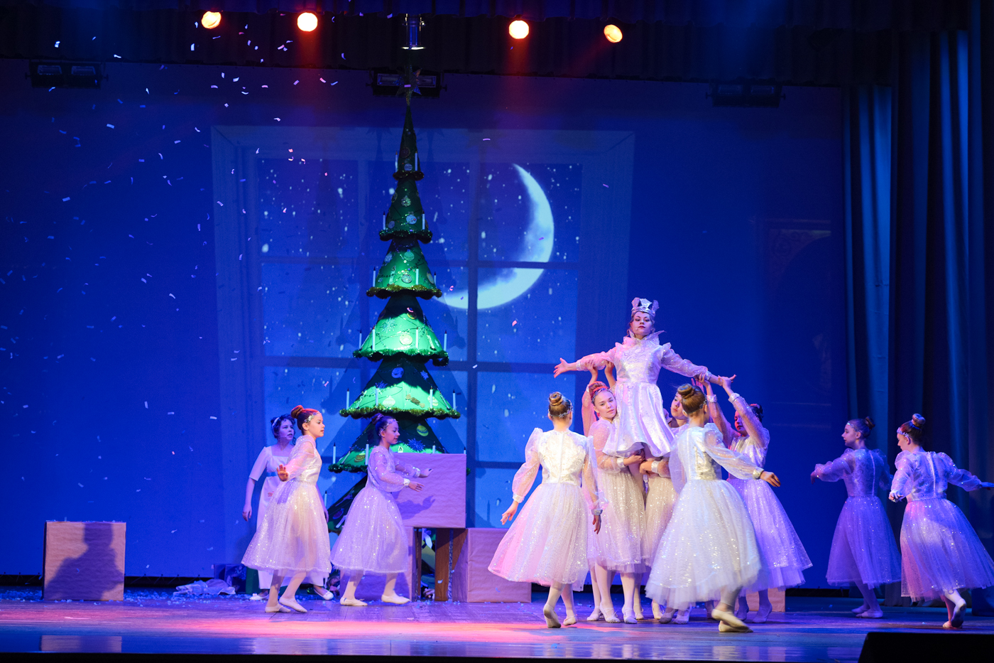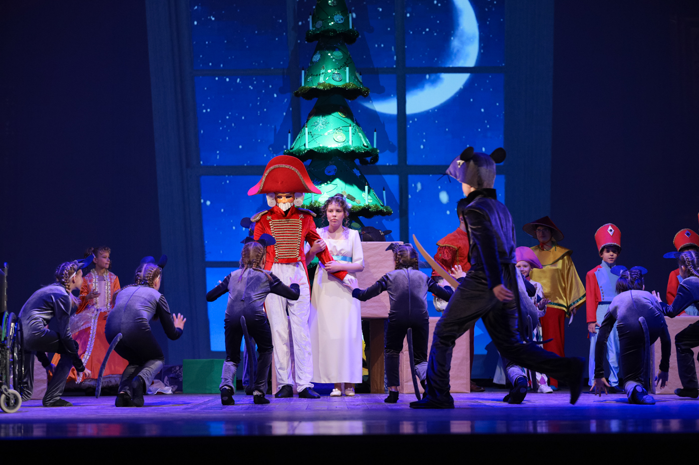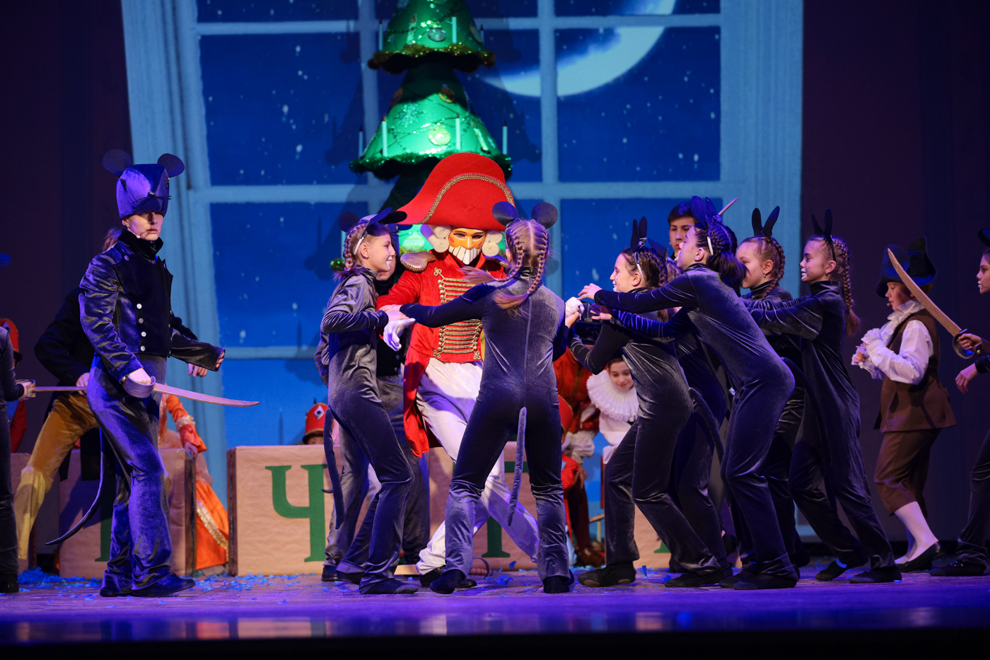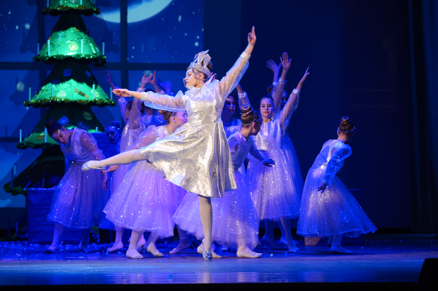 Мыши, снежные хлопья, фантастические цветы – артисты балета, воспитанники «Образцово художественного коллектива» Ансамбля эстрадного танца «КУМИР», художественный руководитель: Елена Матюшкина