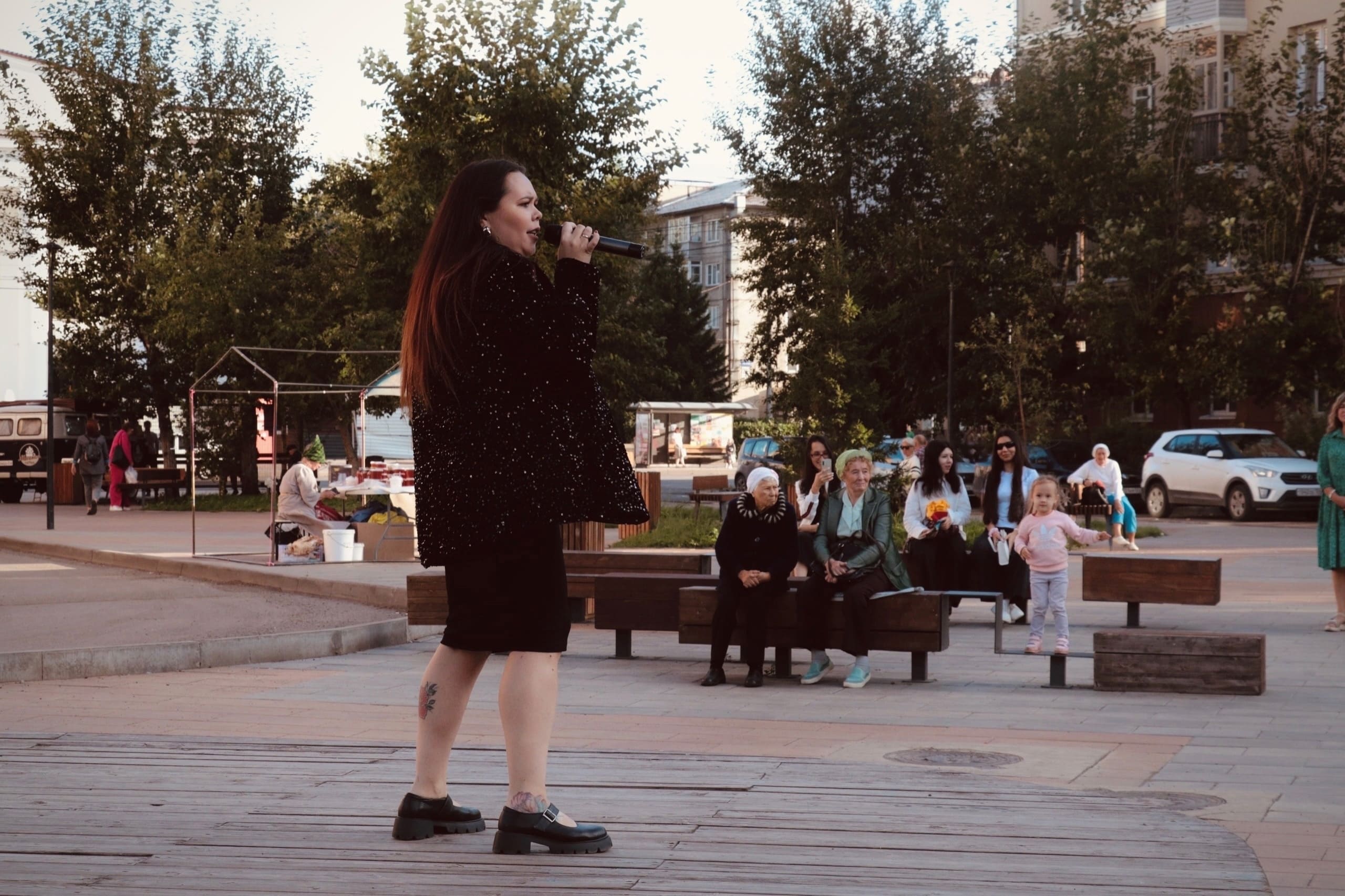 Прекрасный теплый осенний вечер. Множество локаций: коллажная мастерская, литературная гостиная, рыцарские бои Студии артистического фехтования «ГРИФОН»; рисование на мольбертах и прекрасная выставка работ проекта «Отпечаток».